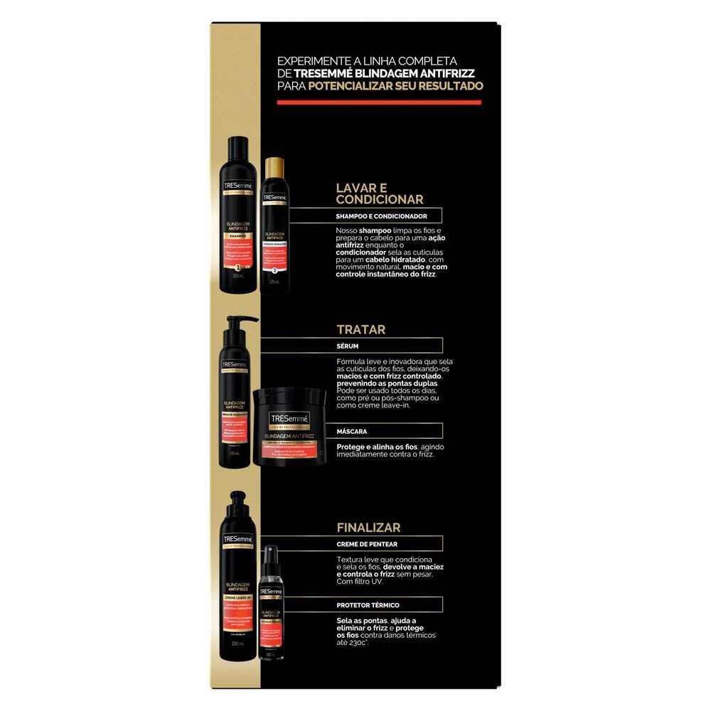| Shampoo+Condicionador TRESemmé Blindagem Antifrizz 350 + 175 ml este produto | R$ 40,99 | — | 4.6/5 | — |