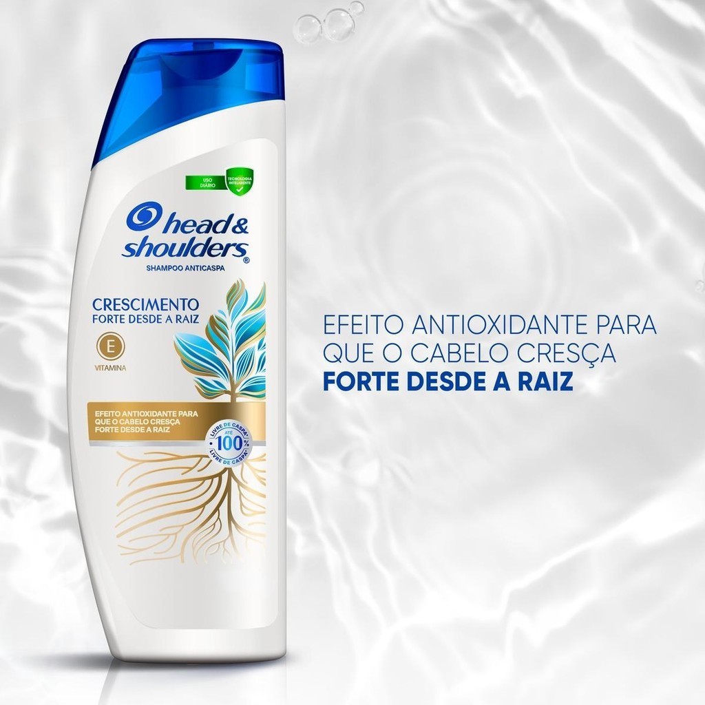 O Shampoo Head & Shoulders Crescimento Forte desde a Raiz é enriquecido com Vitamina E. Sua fórmula proporciona ação antioxidante e efeito revitalizante desde a raiz do cabelo.Sua fórmula com pH balanceado, é efetiva contra caspa* e suave com o cabelo. A tecnologia inteligente de H&S possui 2x mais deposição** de ativos anticaspa, agindo como um escudo de proteção o dia todo.Use diarimente para que o cabelo cresça forte desde a raiz.Enriquecido com vitamina E. Com 2 x mais deposição** de ativos anticaspa.Você até 100% livre de caspa* e 100% confiante. Seu cabelo com efeito antioxidante e revitalizante.Confia, aqui é Head & Shoulders: experimente a marca N°1 em Shampoo do mundo***. O Shampoo com ação antioxidante e efeito revitalizante desde a raiz do cabelo.*Caspa visível, com uso regular. **Mais ingredientes anticaspa no couro cabeludo vs. tecnologia H&S anterior.***Cálculo de Procter & Gamble baseado em parte nos dados informados por NielsenIQ através de seus bancos de dados sindicados para a categoria de Shampoo para o período de Julho de 2022- Junho de 2023, para o banco de dados total do país, de acordo com a hierarquia de produtos padrão da NielsenIQ. Copyright © 2023, The NielsenIQ Company. • Um cuidado exclusivo do seu cabelo e couro cabeludo • Uso diário recomendado. Fórmula com pH balanceado • Fórmula com tecnologia inteligente: efetiva contra a caspa* e suave com o seu cabelo. Efeito revitalizante desde a raiz.*Caspa visível, com uso regular • Experimente Head & Shoulders a marca de shampoo n° 1 do mundo*** • AÇÃO ANTIOXIDANTE E efeito revitalizante desde a raiz do cabelo • FÓRMULA COM TECNOLOGIA INTELIGENTEEfetiva contra a caspa* e suave com o seu cabelo.*Caspa visível, com uso regular • Vitamina E