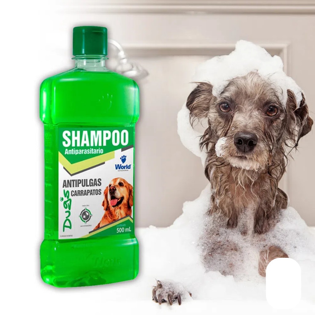 Shampoo Antiparasitário World Veterinária Dug's para Cães - 500ml - Fácil de aplicar, promove maciez e brilho nos pelos; - Auxilia a combater a proliferação de pulgas e carrapatos nos cães; - Mantém a saúde e o bem-estar do seu melhor amigo em dia. Detalhes O Shampoo Antiparasitário World Veterinária Dug's Antipulgas e Carrapatos para Cães foi elaborado para higienizar e ajuda a controlar e a combater a proliferação de pulgas e carrapatos. Sua fórmula concentrada contribui para um efeito rápido seguro e sem toxidade. Mantendo a saúde e o bem-estar do seu melhor amigo em dia. Dicas Especiais Modo de usar: Colocar luvas para aplicação. Molhe seu amiguinho de quatro patas com água morna e esfregue-o com o Shampoo Antiparasitário World Veterinária Dug's Antipulgas e Carrapatos para Cães, realizando massagem no sentido ao contrário dos pelos até obter uma espuma abundante, evitando o local dos olhos, nariz e boca. Deixe o produto atuar por 10 minutos, enxaguar e deixar secar naturalmente. Seguir sempre as recomendações de um Médico Veterinário.