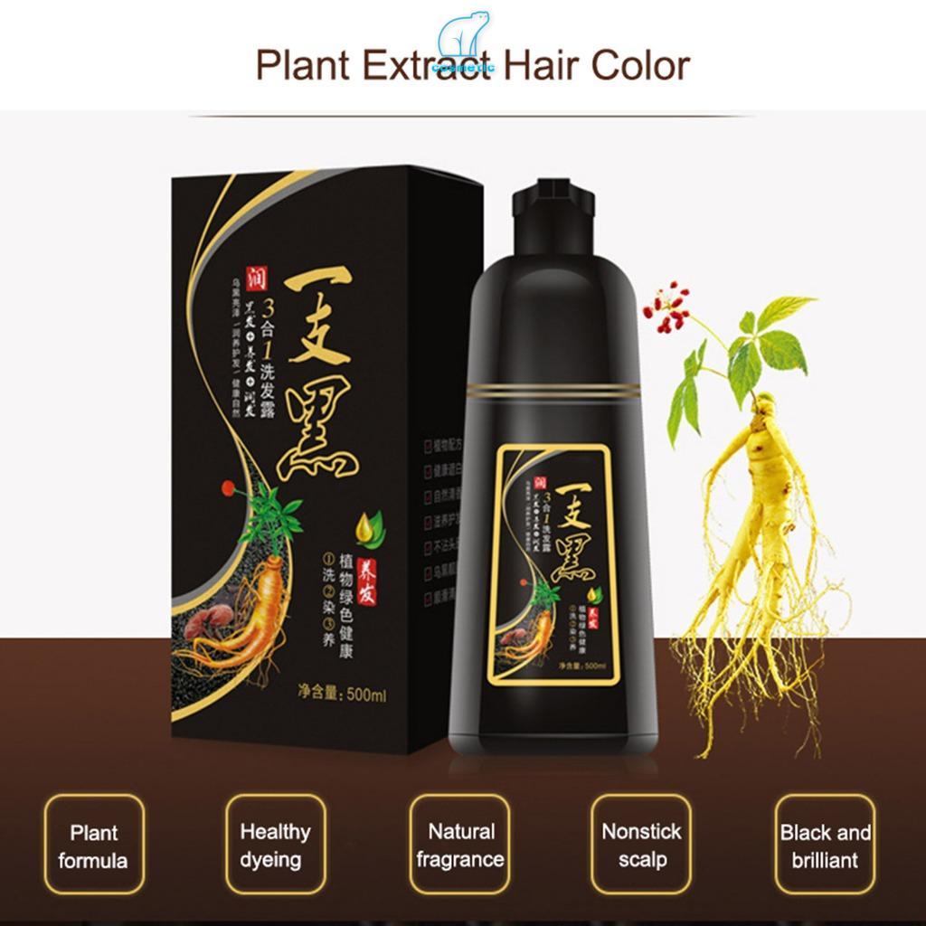 Shampoo De Tintura De Cabelo Preta Natural 500ml-Raízes De Reparo De Coloração Rápida Melhoram A Cor Do