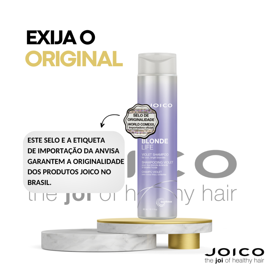 O Joico Blonde Life Violet Shampoo é o cuidado ideal para quem deseja manter os cabelos loiros, platinados ou grisalhos sempre bonitos, luminosos e livres do indesejado tom amarelado. Com pigmentos violetas e fórmula suave, neutraliza os tons quentes sem ressecar, deixando os fios com aparência saudável, macia e radiante. ESPECIFICAÇÕES TÉCNICAS: Marca: Joico Cor: Roxo intenso (violet) Textura: Cremosa e pigmentada Peso líquido: 300ml Origem: Importado (EUA) Indicação: Cabelos loiros, platinados, descoloridos e grisalhos Fórmula: Arginina, óleo de monoi, óleo de tamanu, pigmentos violetas, SmartRelease™ Ação: Neutraliza tons amarelados, limpa suavemente e protege a cor Frequência de uso: 2 a 3 vezes por semana ou conforme necessidade Tipo de uso: Profissional e home care Produto lacrado e com selo de originalidade Benefício: Neutralização instantânea dos tons quentes Benefício: Protege a cor e fortalece a fibra capilar Benefício: Deixa os fios com brilho e toque sedoso Garantia: Produto original com garantia de procedência CUIDADOS Uso externo. Evite o contato com os olhos. Manter fora do alcance de crianças. Armazenar em local seco e fresco.