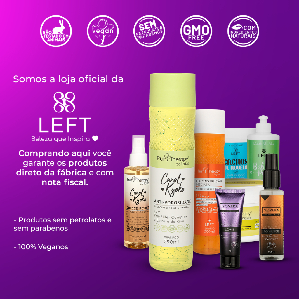 ***** SOMOS A LOJA OFICIAL LEFT COSMÉTICOS ***** Conteúdo do Kit 1 Shampoo Essenciale Nutri Cafeína 500ml; 1 Condicionador Essenciale Nutri Cafeína 300ml. A Linha Essenciale da Left é o mais novo lançamento para cuidar dos seus fios no dia a dia. A linha Essenciale traz a sensação de bem-estar, conforto e cuidado que o seu cabelo merece. O Mini Pack Shampoo + Condicionador Nutri Cafeína da Left Cosméticos é composto pelos melhores produtos para cabelos frágeis, ressecados e com danos. Todos os produtos da linha Essenciale Nutri Cafeína possuem em sua composição Cafeína Anidra, Biotina e Pantenol, responsáveis por deixar os fios fortes e resistentes, estimulando assim, o crescimento capilar saudável. Ah! Nossos ativos também deixam os fios brilhosos e com muita maciez. Sabe aquela receita caseira com café para cabelos? Aqui ela está muito melhorada e você terá um produto mais prático, que não deixará resíduos! Indicação O Mini Pack Shampoo + Condicionador Essenciale Nutri Cafeína é indicado para cabelos frágeis, com danos, que estejam ressecados (pode ser utilizado em cabelos crespos, cacheados, ondulados, lisos ou com química). Como usar o Mini Pack Shampoo + Condicionador Essenciale Nutri Cafeína Aplique nos cabelos molhados o Shampoo Nutri Cafeína, massageie os fios por cerca de 1 minuto e enxágue. Atenção: deve ser aplicado somente no couro cabeludo e raíz. Para um melhor resultado de limpeza, repita a operação se julgar necessário. Em seguida, aplique o Condicionador Nutri Cafeína nos cabelos molhados, massageie-os e deixe agir por 2 minutos. Enxágue. Para melhores resultados utilize a linha completa com a Máscara Essenciale Nutri Cafeína. Por que usar café no cabelo? Já viu receitinha caseira de “misturar o pó de café no shampoo transparente para acelerar o crescimento”? A Cafeína, presente no grão do café, atua na estimulação da circulação sanguínea do couro cabeludo, podendo acelerar o processo de crescimento dos fios, além de promover uma boa e delicada limpeza na raiz dos cabelos. Antioxidante: sim, a cafeína também funciona como um ótimo antioxidante, uma vez que ela pode bloquear o hormônio responsável pela calvície e desacelerar o envelhecimentos dos fios. Como usar café no cabelo? São várias as receitas usando o pó do café, a borra do café e até mesmo o café já coado (líquido). Mas, fala sério, a sujeira e o tempo gasto não valem a pena. Café para cabelo loiro, então… praticamente proibido! Já que há o risco de manchar as madeixas. Por esses e tantos outros motivos, a linha Nutri Cafeína da Left veio facilitar a sua rotina de cuidados, e se tornará a sua mais nova aliada no tratamento e crescimento saudável dos fios! Informações Adicionais Mini Pack Shampoo + Condicionador Essenciale Nutri Cafeína - Shampoo: p.H 5,5; Condicionador: p.H 4; - O Shampoo NÃO possui sal; - Produtos liberados para Gestantes e Lactantes; - Livre de Petrolatos e Parabenos; - Produtos não testados em animais; - Condicionador liberado para Low e No Poo. Conteúdo do Kit 1 Shampoo Essenciale Nutri Cafeína 500ml; 1 Condicionador Essenciale Nutri Cafeína 300ml.