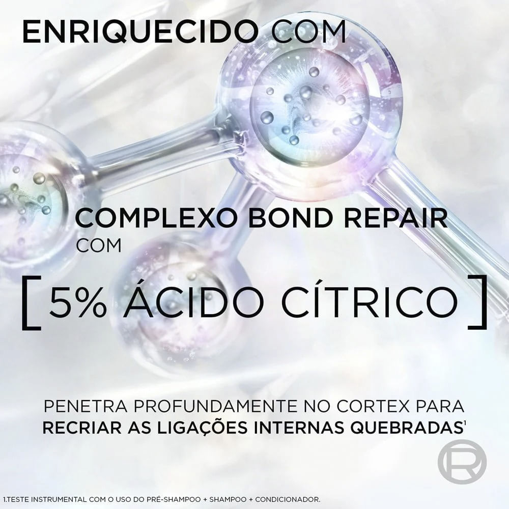 O Shampoo Bond Repair Elseve é o segundo passo da linha revolucionária Bond Repair, especialmente desenvolvido para reparar os cabelos danificados a nível molecular enquanto limpa suavemente sem sulfato. Com 5% Complexo Bond Repair e Ácido Cítrico, sua fórmula fortalece a fibra capilar desde o interior, reduzindo os danos mais profundos e restaurando a resistência dos fios. Ideal para todos os tipos de cabelos danificados, ele prepara os fios para os próximos passos da rotina de reparação, garantindo maciez, força e saúde capilar desde a primeira lavagem. Benefícios Incríveis:• Limpeza suave sem sulfato.• Fortalece a fibra capilar desde o interior.• Reduz os danos mais profundos.• Reconstrói as ligações capilares a nível molecular.• Cabelos mais resistentes, saudáveis, macios e brilhantes.• Prepara os fios para receber o tratamento completo da linha Bond Repair.• Indicado para todos os tipos de cabelos danificados. Ativos Poderosos:• 5% Complexo Bond Repair: Tecnologia de reparação molecular.• Ácido Cítrico: Penetra profundamente no córtex capilar, reconstruindo e fortalecendo as fibras. Modo de Uso:• Aplique o shampoo nos cabelos molhados, massageando suavemente o couro cabeludo e os fios até formar espuma. • Enxágue bem. Para um resultado de reparação máxima, utilize em conjunto com o pré-shampoo, condicionador e tratamento intensivo da linha L'Oréal Paris Elseve Bond Repair. Tecnologia Avançada: 5% Complexo Bond Repair + Ácido Cítrico: Atua profundamente no córtex capilar, reconstruindo ligações internas quebradas e fortalecendo a fibra desde o interior. Sobre a marca: Há mais de 50 anos, L’Oréal Paris combina pesquisa científica avançada e ingredientes de alta performance para oferecer soluções capilares inovadoras. A linha Elseve Bond Repair nasceu para redefinir o conceito de tratamento reconstrutor, entregando reparação profunda e resultados de salão no conforto da sua casa. Você vale este cuidado! • Restaure seus fios, recupere sua força e tenha o melhor cabelo da sua vida - porque você vale muito!