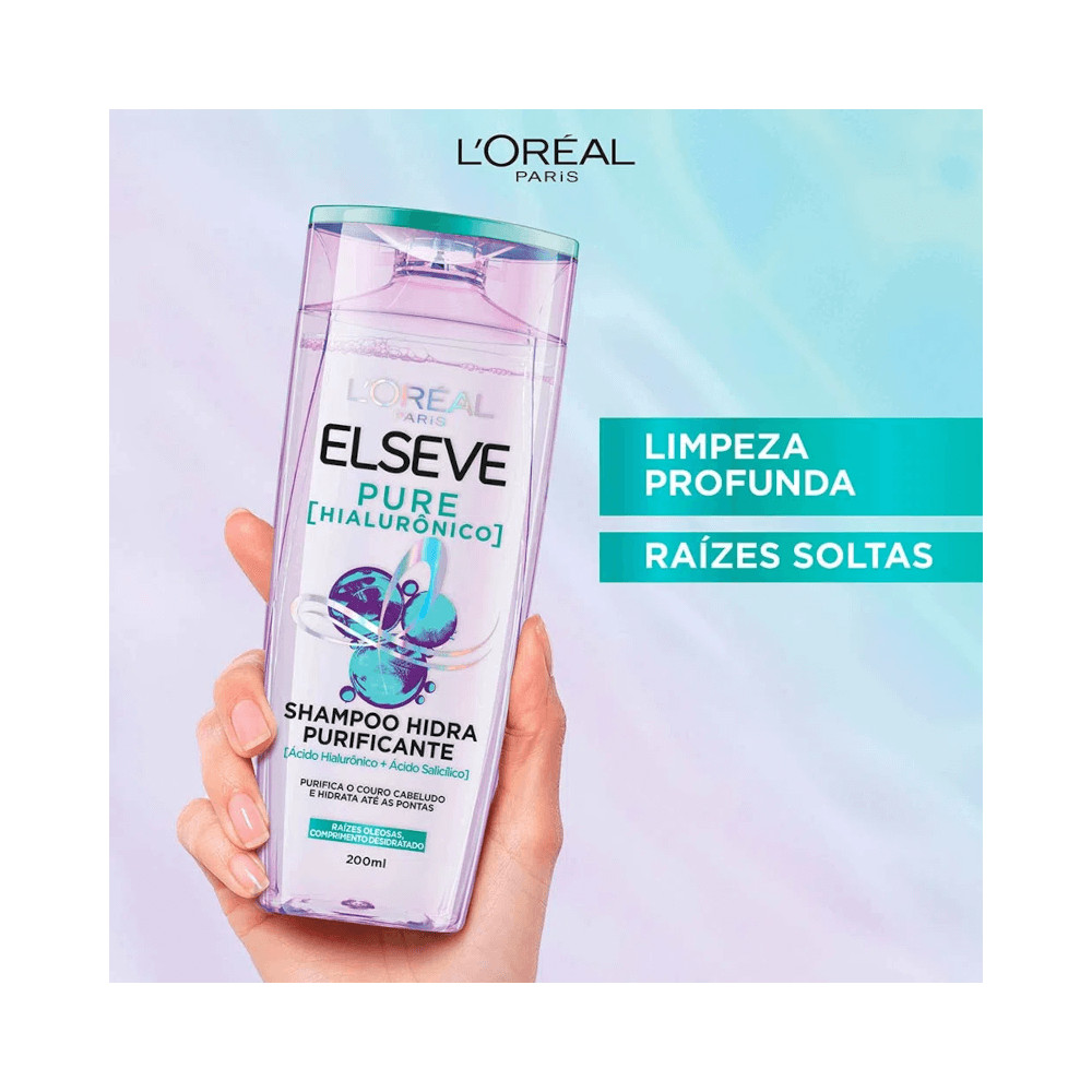 SHAMPOO ELSEVE PURE HIALURÔNICO 200ML ===================================== O Shampoo Elseve Pure Hialurônico é ideal para cabelos oleosos e desidratados, oferecendo uma limpeza profunda. Formulado pela L'Oréal Paris, combina ácido hialurônico e agentes purificantes, equilibrando a oleosidade sem pesar. Este shampoo é formulado para proporcionar uma limpeza eficaz em raízes oleosas, mantendo o equilíbrio necessário. Garante fios hidratados com a ação do ácido hialurônico, trazendo leveza e suavidade ao toque. LIMPEZA PROFUNDA E EFICAZ Este shampoo é formulado para proporcionar uma limpeza eficaz em raízes oleosas, mantendo o equilíbrio necessário. HIDRATAÇÃO PROLONGADA Garante fios hidratados com a ação do ácido hialurônico, trazendo leveza e suavidade ao toque. MODO DE USO =========== Para melhores resultados, siga os passos abaixo para aplicar o Shampoo Elseve Pure Hialurônico corretamente. Aplique o shampoo nos cabelos molhados, massageando suavemente o couro cabeludo com as pontas dos dedos. Massageie o couro cabeludo por alguns minutos, garantindo que o produto se espalhe uniformemente. Enxágue bem, removendo todo o produto, para evitar qualquer resíduo que possa pesar os fios. Se necessário, repita o processo para uma limpeza ainda mais profunda e eficaz. APLICAÇÃO Aplique o shampoo nos cabelos molhados, massageando suavemente o couro cabeludo com as pontas dos dedos. MASSAGEM Massageie o couro cabeludo por alguns minutos, garantindo que o produto se espalhe uniformemente. ENXÁGUE Enxágue bem, removendo todo o produto, para evitar qualquer resíduo que possa pesar os fios. REPETIÇÃO Se necessário, repita o processo para uma limpeza ainda mais profunda e eficaz. CARACTERÍSTICAS E BENEFÍCIOS DO SHAMPOO ELSEVE PURE HIALURÔNICO =============================================================== O Shampoo Elseve Pure Hialurônico é formulado para equilibrar a oleosidade e hidratar sem pesar. É Perfeito para uso diário e promove um couro cabeludo purificado. Proporciona hidratação intensa aos fios, mantendo-os saudáveis e macios ao toque. Age no controle da oleosidade do couro cabeludo, prevenindo o acúmulo de resíduos. Facilita a distribuição do produto por todo o cabelo durante a aplicação. Possui uma embalagem reciclável prática de manusear. ÁCIDO HIALURÔNICO Proporciona hidratação intensa aos fios, mantendo-os saudáveis e macios ao toque. ÁCIDO SALICÍLICO Age no controle da oleosidade do couro cabeludo, prevenindo o acúmulo de resíduos. TEXTURA LÍQUIDA Facilita a distribuição do produto por todo o cabelo durante a aplicação. EMBALAGEM RECICLÁVEL Possui uma embalagem reciclável prática de manusear. ESPECIFICAÇÕES TÉCNICAS ======================= O shampoo é ideal para quem busca equilíbrio entre limpeza e hidratação, especialmente para cabelos oleosos e desidratados. Volume: 200ml Marca: L'Oréal Paris Tipo de Produto: Shampoo purificante Ativo Principal: ÁCido hialurônico pH Balanceado: Respeita o pH natural do couro cabeludo Uso Diário: Adequado para uso regular sem acúmulo de resíduos SOBRE A MARCA L'ORÉAL PARIS =========================== A L'Oréal Paris é sinônimo de inovação e qualidade em produtos de beleza, com soluções eficazes para todos os tipos de cabelo. A marca é conhecida por desenvolver produtos com tecnologia avançada, garantindo resultados visíveis e duradouros. A marca está sempre à frente no desenvolvimento de novas fórmulas. Todos os produtos são rigorosamente testados para garantir a eficácia. Oferece uma ampla gama de produtos para todos os tipos de cabelo. INOVAÇÃO CONTÍNUA A marca está sempre à frente no desenvolvimento de novas fórmulas. QUALIDADE GARANTIDA Todos os produtos são rigorosamente testados para garantir a eficácia. VARIEDADE DE PRODUTOS Oferece uma ampla gama de produtos para todos os tipos de cabelo.