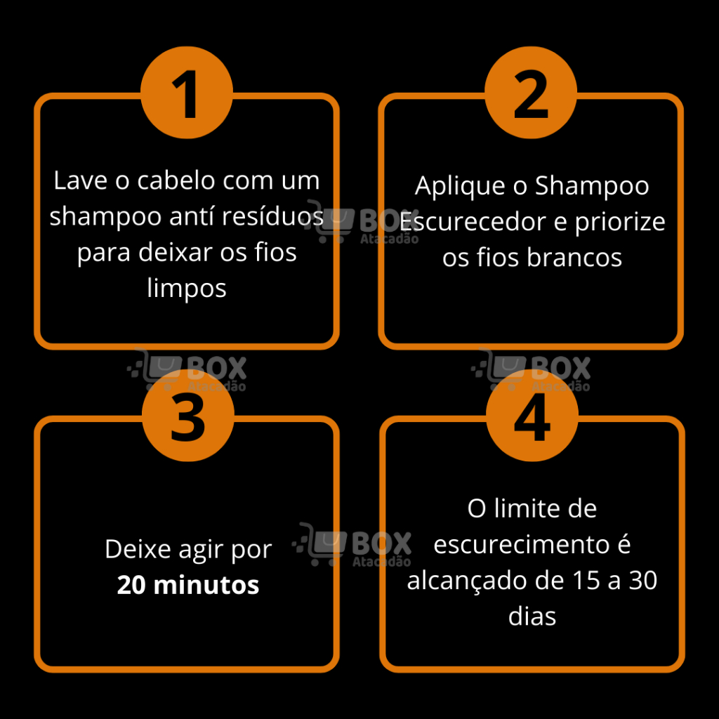 ENVIO EM MENOS DE 24 HORAS O Shampoo Escurecedor para tons escuros da Dom Pelo é uma inovação única no mercado, projetado especialmente para homens e mulheres que desejam manter uma aparência mais jovem e livre de fios brancos. Este shampoo escurecedor não apenas cobre os cabelos grisalhos, mas também proporciona uma cor intensa e vibrante, realçando a beleza natural dos cabelos. Além disso, sua fórmula enriquecida nutre e hidrata os fios, garantindo que eles permaneçam saudáveis e brilhantes. O uso regular do shampoo escurecedor ajuda a prolongar a coloração, proporcionando resultados duradouros e um efeito de cabelo recém-tinturado. Experimente o Shampoo Escurecedor da Dom Pelo e redescubra a confiança em sua aparência! Modo de Usar: Passo 1 - Realize a primeira lavagem do cabelo ou da barba com um shampoo de sua preferência, podendo ser antiqueda, anticaspa ou um shampoo comum. Essa etapa é importante para remover as impurezas e preparar os fios, deixando-os limpos e prontos para receber o Shampoo Escurecedor Dom Pelo. Passo 2 - Aplique o Shampoo Escurecedor na quantidade necessária para cobrir bem os fios. Distribua-o uniformemente, concentrando-se nas áreas com fios brancos. Deixe o produto agir por 15 a 20 minutos. Após esse tempo, enxágue abundantemente e pronto! Para alcançar o tom desejado, recomenda-se o uso do shampoo escurecedor a cada 15 a 30 dias, aplicando pelo menos uma vez a cada dois dias. Após atingir o escurecimento desejado, utilize o produto de 2 a 4 vezes por semana para manter os resultados. Resultado: Com o uso regular do Shampoo Escurecedor Dom Pelo, você alcançará um tom mais escuro e vibrante em seus cabelos ou barba. A coloração se intensifica gradualmente, permitindo que você elimine os fios brancos e obtenha uma aparência rejuvenescida. Após atingir o tom desejado, a manutenção é simples: basta usar o produto de 2 a 4 vezes por semana para preservar a cor e manter seus fios saudáveis e bonitos. Desfrute de um cabelo ou barba com aparência revitalizada e cheia de vida! Recomendação: para ter melhores resultado faça o passo a passo mencionado anteriormente de 2 a 4 vezes por dia com um intervalo de no mínimo 3 horas cada, faça isso durante os 2 primeiros dias de uso, a partir do terceiro dia faça uma aplicação diária e siga dessa maneira até alcançar o resultado esperado