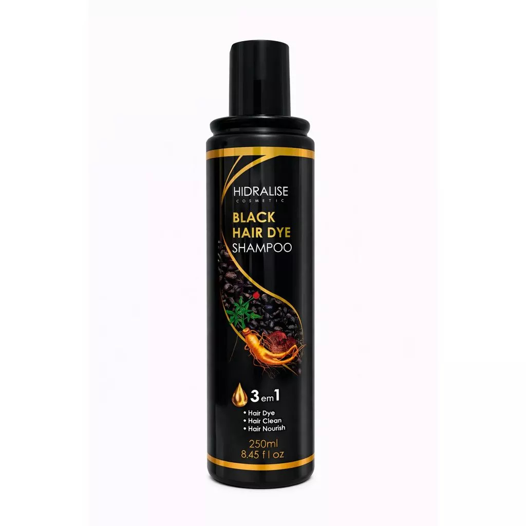 Shampoo Escurecedor de Cabelos Tonalisantes Preto 3 em 1 Black Hair Dye 250ml Hidralise