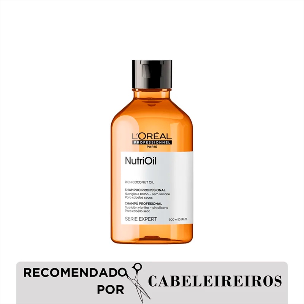 Shampoo Expert Nutrioil 300ml- L'oréal Professionnel Você está comprando em uma loja Autorizada L'oréal Professionnel. Sobre o Produto: O shampoo NutriOil de L'Oréal Professionnel é a solução ideal para cabelos mais nutridos e com muito mais brilho. Ideal para complementar sua etapa de nutrição no cronograma capilar. Sua fórmula profissional é enriquecida com óleo de coco em uma textura leve que confere a dose certa de nutrição sem pesar os fios. Com NutriOil, os cabelos se transformam instantaneamente: 4x mais nutridos, mais macios e com muito mais brilho. Óleo de Coco: O óleo de coco tem ação umectante, que adere ao fio formando uma camada protetora na superfície. Além de penetrar na fibra, fortalecendo a sua resistência e promovendo nutrição com maciez, brilho e movimento. Óleo de Soja: O óleo de soja é um ingrediente que promove força e proteção capilar, trazendo de volta a vida cabelos fracos e quebradiços. Seu uso contínuo reduz a porosidade dos fios tornando o cabelo mais forte e mais fácil de desembaraçar. Tipo de Cabelo: Cabelos Ressecados e sem brilho Modo de usar: Aplique o Shampoo diretamente sobre o cabelo molhado. Massageie suavemente até surgir espuma e, depois, enxágue com bastante água.