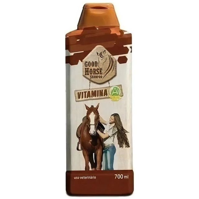 DESCRIÇÃO: O Shampoo Good Horse Vitamina A é indicado para todo tipo de pelagem, cores e comprimento. Desenvolvido para fazer a limpeza nos pelos e proporcionar uma maior maciez e brilho na pelagem do animal. Com uma formulação especial, forma uma película hidratante na pelagem do animal que protege por muito tempo. CARACTERÍSTICAS: Contém: 01 Shampoo Good Horse Volume: 700ml COMPOSIÇÃO: Lauril Eter Sulfato de Sódio: 28,00ml; Betaína: 2,50ml; Silicone: 2,00ml; Fragrância: 0,25ml; Óleos Essenciais: 1,00ml; Veículo Q.S.P.: 100,00ml.