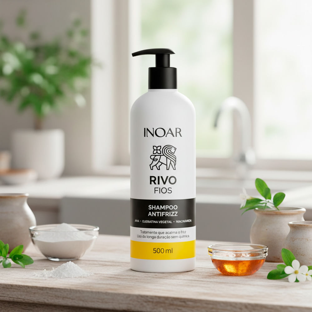 Shampoo Inoar Rivo Fios Antifrizz 500ml - Liso de Longa Duração Sem Química, com Queratina Vegetal e Niacinamida Shampoo Inoar Rivo Fios Antifrizz: Liso Duradouro e Cuidado Sem Química O Shampoo Inoar