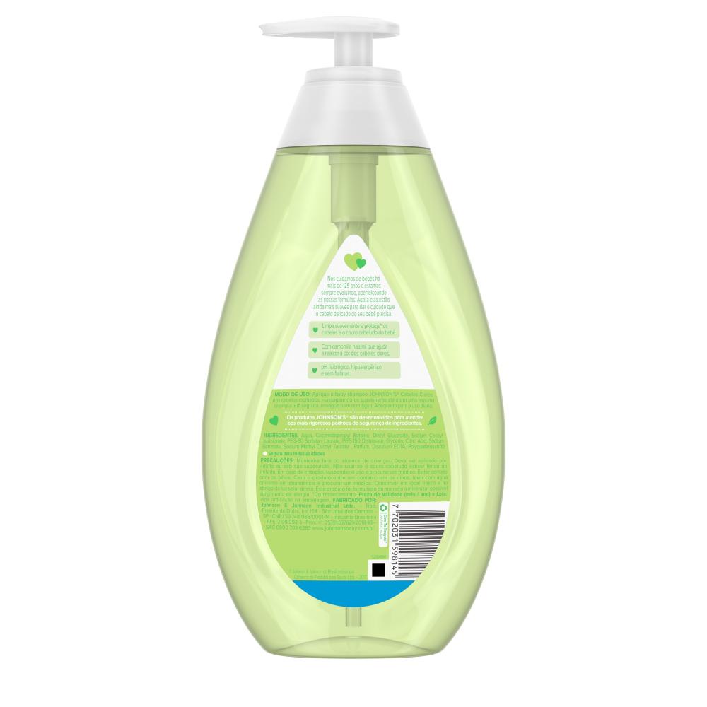 O que é e para que serve? Você sabia que o cabelo dos bebês é 5x mais fino que o cabelo dos adultos? Com fórmula suave para dar o cuidado que o cabelo do seu bebê precisa, o Shampoo Para Bebê JOHNSON'S® Baby Para Cabelos Claros, 200mL limpa suavemente e protege* os cabelos e o couro cabeludo do bebê desde o primeiro dia de vida, além de contar com camomila natural**, que realça a cor dos cabelos claros. Testado por Pediatras e Dermatologistas. Frasco com 20% de plástico reciclado, cuidando do seu bebê e do futuro do nosso planeta! *do ressecamento **Fragrância com extrato de camomila Benefícios e diferenciais ? Realça a cor dos cabelos claros com camomila natural** ? Tão suave para os olhos quanto água pura ? Tripla ação: cabelo limpo, protegido* e hidratado (*contra o ressecamento) ? Hipoalergênico, formulado para ser suave ? Testado por pediatras e dermatologistas ? A fórmula CHEGA DE LÁGRIMAS® permite uma experiência sem choro, por ser suave aos olhos. ? Livre de ingredientes que são agressivos à pele do bebê (corantes, parabenos, ftalatos e sulfato) ? Feito com glicerina de origem natural ? pH ideal para a delicada pele do bebê **Fragrância com extrato de camomila Como usar Aplique o Shampoo JOHNSON’S® para Cabelos Claros nos cabelos molhados, massageando-os suavemente até obter uma espuma cremosa. Em seguida, enxágue bem com água. Adequado para o uso diário Indicações de uso: seguro para todas as idades Composição Aqua/água purificada, Cocamidopropyl Betaine/cocoamidopropilbetaína, Decyl Glucoside/decil glicosídeo, Sodium Cocoyl Isethionate/cocoil isetionato de sódio, PEG-80 Sorbitan Laurate/polissorbato 20, PEG-150 Distearate/diestearato de PEG-150, Glycerin/glicerol, Citric Acid/ácido cítrico, Sodium Benzoate/benzoato de sódio, Sodium Methyl Cocoyl Taurate/metil cocoil taurato de sódio, Parfum/fragrância, Disodium EDTA/edetato dissódico, Polyquaternium-10/poliquatérnio-10. Precauções Mantenha fora do alcance de crianças. Deve ser aplicado por adultos ou sob sua supervisão. Não usar se o couro cabeludo estiver ferido ou irritado. Em caso de irritação, suspender o uso e procurar médico. Evitar contato com os olhos. Caso o produto entre em contato com os olhos, lavar com água corrente em abundância e procure um médico. Conservar em local fresco e ao abrigo da luz solar direta. Este produto foi formulado de maneira a minimizar possível surgimento de alergia.