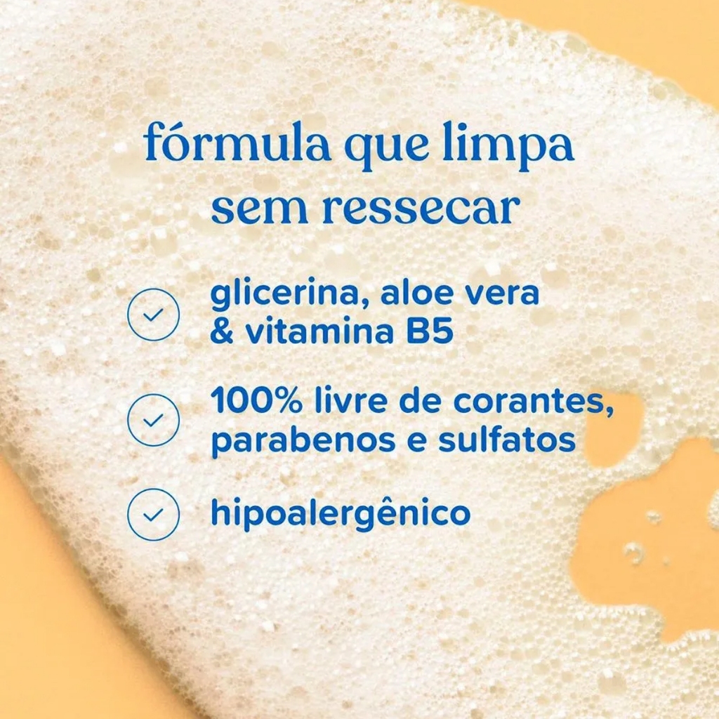 SHAMPOO JOHNSONS BABY DE GLICERINA E VITAMINA B5 400ML O Shampoo Para Bebê JOHNSON'S Baby De Glicerina, 400mL limpa suavemente e protege os cabelos e o couro cabeludo do ressecamento. Testado por Pediatras e Dermatologistas. Frasco com 20% de plástico reciclado, cuidando do seu bebê e do futuro do nosso planeta! Benefícios e diferenciais - Tão suave para os olhos quanto água pura - Tripla ação: cabelo limpo, protegido* e hidratado (*contra o ressecamento) - Hipoalergênico, formulado para ser suave - Testado por pediatras e dermatologistas - Livre de ingredientes que são agressivos à pele do bebê (corantes, parabenos, ftalatos e sulfato) - A fórmula CHEGA DE LÁGRIMAS permite uma experiência sem choro, por ser suave aos olhos. - Feito com glicerina de origem natural - pH ideal para a delicada pele do bebê Como usar Aplique o Shampoo JOHNSON’S de Glicerina nos cabelos molhados, massageando-os suavemente até obter uma espuma cremosa. Em seguida, enxágue bem com água. Adequado para o uso diário. Indicações de uso: seguro para todas as idades