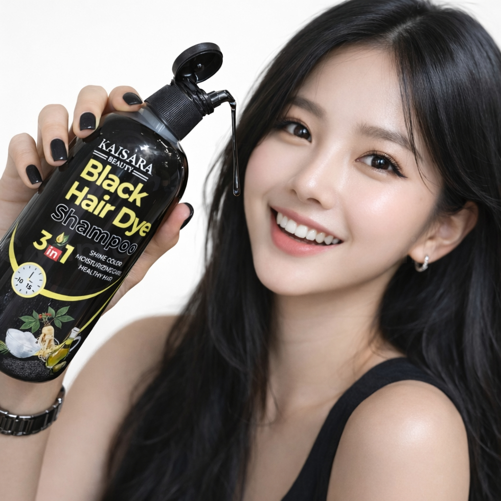 Shampoo Kaissara HAIR DYE 3 EM 1 500ml Tonalizante Cobre Cabelos Brancos Rápido Escurecedor Preto
