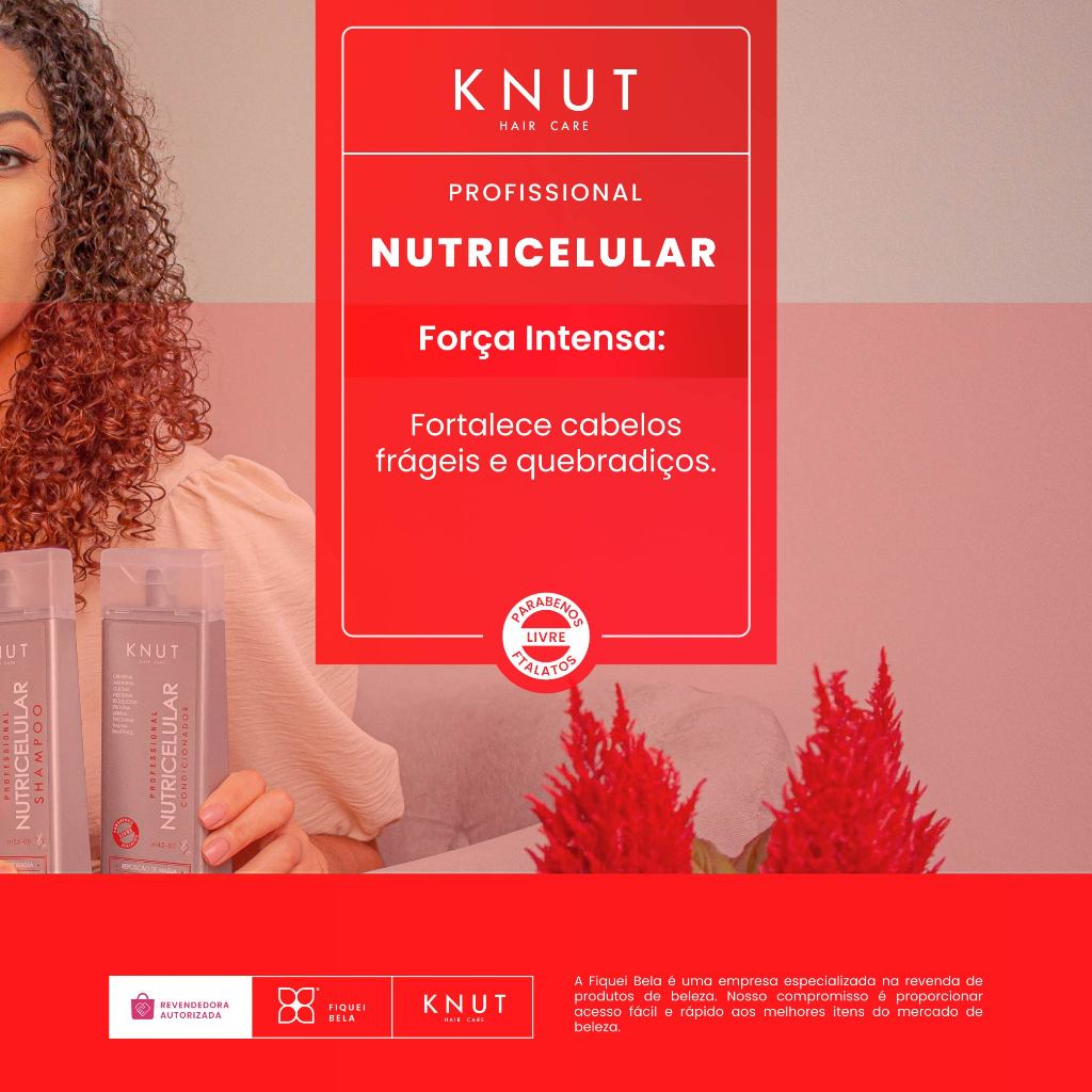 PRODUTO ORIGINAL COM NOTA FISCAL! - - - - - APRESENTAÇÃO: 1 x Shampoo Knut Nutricelular 250Ml - - - - - - - - - - DESCRIÇÃO: KNUT NUTRICELULAR combina 10 ativos poderosos, entre proteínas, aminoácidos e vitaminas que nutrem a fibra capilar, regeneram as células e com sua textura cremosa penetram profundamente, hidratando e tratando os fios de dentro para fora. O Shampoo KNUT NUTRICELULAR é indicado para cuidados diários, a concentração dos ativos equilibrados torna-o delicado para todos os tipos de cabelos. Age limpando profundamente ,retira os resíduos do couro cabeludo e dos fios ,hidrata e dá brilho com efeito prolongado. Enriquecido com creatina, pantenol e aminoácidos com propriedades nutritivas restauradoras mantém a saúde e maleabilidade dos cabelos,leveza ao toque e muita maciez. Cabelos 100% hidratados e nutridos só com KNUT NUTRICELULAR. - - - - - MODO DE USO: Aplicar sobre os cabelos molhados e lavar ligeiramente a primeira vez a fim de remover os resíduos que se opõem à formação da espuma. Enxaguar e reaplicar o shampoo, massageando o couro cabeludo suavemente até formar uma espuma rica e cremosa. Deslizar a espuma para as pontas. Enxaguar e aplicar o Condicionador e a Máscara KNUT NUTRICELULAR promovendo a selagem das cutículas dos fios. - - - - - - - - - - Enviamos o seu pedido o quanto antes possível! Agradecemos a preferência.