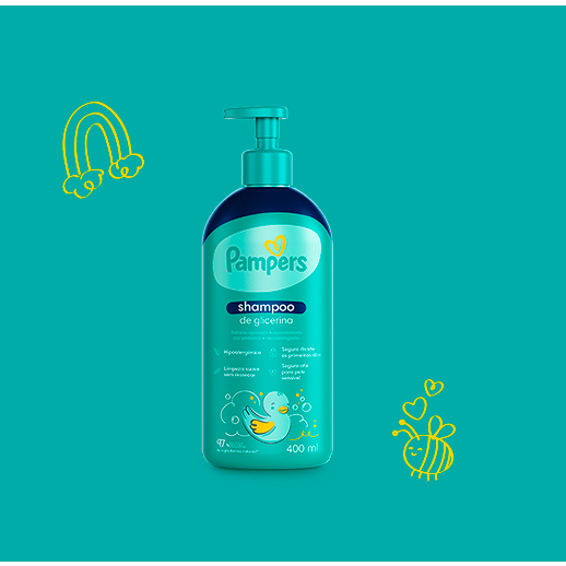O shampoo Pampers Glicerina é ideal para uma limpeza suave e segura sem lágrimas e sem ressecar. Sua composição sem álcool etílico, fenoxietanol, parabenos e corantes é super tranquila até para couro cabeludo sensível e possui 97% de ingredientes naturais com pH ideal para o couro cabeludo do bebê. Testado, aprovado e recomendado por pediatras e dermatologistas, o shampoo Pampers Glicerina é hipoalergênico e conta com fórmula biodegradável, vegana e livre de crueldade animal.