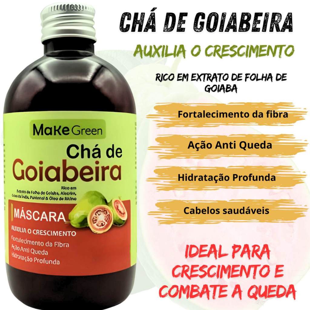 Kit Crescimento Antiqueda Chá de Goiabeira 01 Shampoo Chá de Goabeira 250g 01 Máscara Chá de Goiabeira 250g 01 Leave in Chá de Goiabeira 250g - Shampoo Chá de Goiabeira A Linha Chá de Goiabeira é um tratamento completo para os cabelos e couro cabeludo. Sua fórmula contém o extrato natural da folha da goiabeira, que vem demonstrando ser um ótimo auxilio no crescimento dos cabelos e no combate a queda.Também compoe a formulação os extratos de alecrim e cravo da índia, pantenol e óleo de rícino. Isso tudo para deixar seus cabelos fortes e saúdaveis. Modo de Usar: Aplique o Shampoo Chá de Goiabeira sobre os cabelos molhados, massageando-os até a formação de espuma. Deixe agir entre 2 e 5 minutos sempre ativando o couro cabeludo, esfregando-os com as pontas dos dedos e enxágue. Repita a operação se necessário. COMPOSIÇÃO: Aqua, Cetearyl Alcohol, Behentrimonium, Cetrimonium Chloride, Polyquaternium-39, Petrolatum, Glycerin, Propylene Glycol, Paraffinum Liquidum, Cyclopentasiloxane (and) Dimethicone, Cyclopentasiloxane (and) Cetearyl Dimethicone/Vinyl, Ricinus communis (Castor) seed oil, Astrocaryum Murumuru Seed Butter, Hydrolisate Keratin, Psidium Guajava Leaf Extract, Rosmarinus Officinalis Leaf Extract, Ginkgo Biloba Extract, Eugenia Caryophyllus Leaf Extract, Disodium EDTA, Citric Acid, BHT, PEG 90, Methylisothiazolinone; Methylchloroisothiazolinone, Parfum.. - Máscara Chá de Goiabeira A Linha Chá de Goiabeira é um tratamento completo para os cabelos e couro cabeludo. Sua fórmula contém o extrato natural da folha da goiabeira, que vem demonstrando ser um ótimo auxilio no crescimento dos cabelos e no combate a queda.Também compoe a formulação os extratos de alecrim e cravo da índia, pantenol e óleo de rícino. Isso tudo para deixar seus cabelos fortes e saúdaveis. Modo de Usar: Após o uso do Shampoo aplique a máscara chá de Goiabeira sobre os cabelos ainda molhados, massageando-os bem. Deixe agir entre 5 e 10 minutos sempre ativando e enluvando os fios. Enxague completamente. COMPOSIÇÃO: Aqua, Cetearyl Alcohol, Behentrimonium, Cetrimonium Chloride, Polyquaternium-39, Petrolatum, Glycerin, Propylene Glycol, Paraffinum Liquidum, Cyclopentasiloxane (and) Dimethicone, Cyclopentasiloxane (and) Cetearyl Dimethicone/Vinyl, Ricinus communis (Castor) seed oil, Astrocaryum Murumuru Seed Butter, Hydrolisate Keratin, Psidium Guajava Leaf Extract, Rosmarinus Officinalis Leaf Extract, Ginkgo Biloba Extract, Eugenia Caryophyllus Leaf Extract, Disodium EDTA, Citric Acid, BHT, PEG 90, Methylisothiazolinone; Methylchloroisothiazolinone, Parfum. - Leave in Chá de Goiabeira Auxilia no crescimento e fortalecimento da fibra É um fantástico finalizador, proporcionando uma profunda hidratação aos fios graças a combinação de óleos , manteigas e, um blend de silicones nobres e o extrato da Goiabeira assim formando uma fina camada protetora sobre os fios. Evitando que agentes externos como sol , vento, poeira e outros causem danos aos fios. Ele é um finalizante para transformar a beleza dos cabelos.