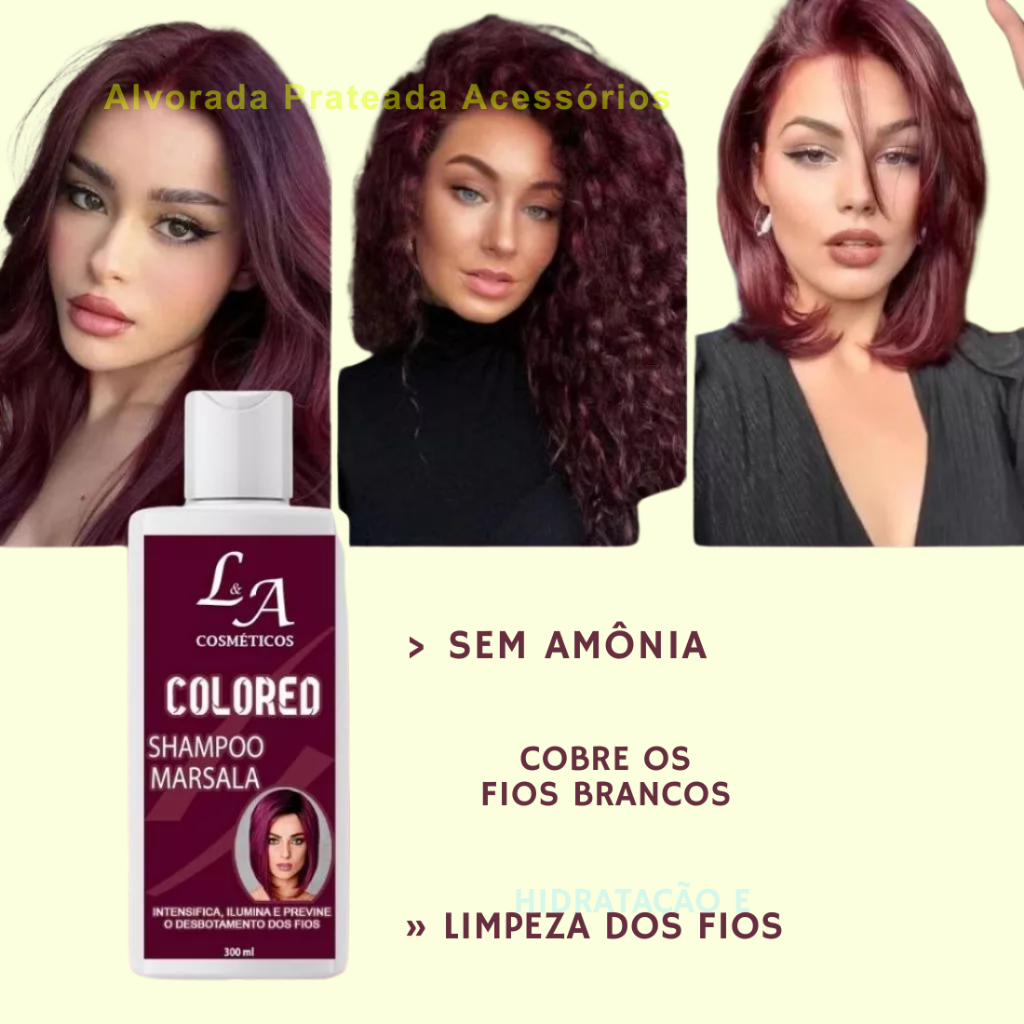 Shampoo + Máscara Tonalizante Marsala La Cosméticos ✨ Transforme o visual dos seus cabelos com o Kit Shampoo + Máscara Tonalizante Marsala da La Cosméticos! Ideal para quem deseja um tom marsala intenso e profundo, com brilho radiante e acabamento profissional. A fórmula sem amônia cuida dos fios enquanto proporciona uma cor uniforme e natural, perfeita para cobrir fios brancos ou manter o tom marsala. ✔ Sem Amônia: Fórmula suave que não agride os fios, permitindo uso frequente. ✔ Resultado Natural: Cor vibrante e duradoura, com acabamento impecável. ✔ Cobertura de Fios Brancos: Eficaz na cobertura, garantindo um visual uniforme. ✔ Hidratação e Brilho: Ingredientes que nutrem, deixando os cabelos sedosos e brilhantes. ✔ Fácil Aplicação: Shampoo comum + máscara tonalizante para um resultado prático e profissional. Modo de Uso 🧴 Shampoo: Aplique nos cabelos molhados, massageie e deixe agir por 5-10 minutos. Enxágue bem. 💆♀️ Máscara: Após o shampoo, aplique mecha por mecha (com luvas), deixe agir por 20 minutos e enxágue. Composição Principal 💧 Aqua, Cetearyl Alcohol, Amodimethicone, Panthenol, Óleo de Abacate, Manteiga de Karité, Proteínas Hidrolisadas e tonalizante marsala. Garantia La Cosméticos ✔ Produto Original: Direto da fábrica, 100% autêntico. ✔ Pronta Entrega: Enviamos em até 24h úteis. ✔ Compra Segura: Embalagem reforçada para evitar avarias. Recomendações 🔸 Faça um teste de mecha antes da aplicação. 🔸 Evite contato com os olhos. Em caso de contato, lave com água. 🔸 Para manter a cor, evite shampoos antirresíduos em excesso. 💬 Ficou com dúvidas? Chama a gente no chat! Estamos aqui para ajudar! 💜