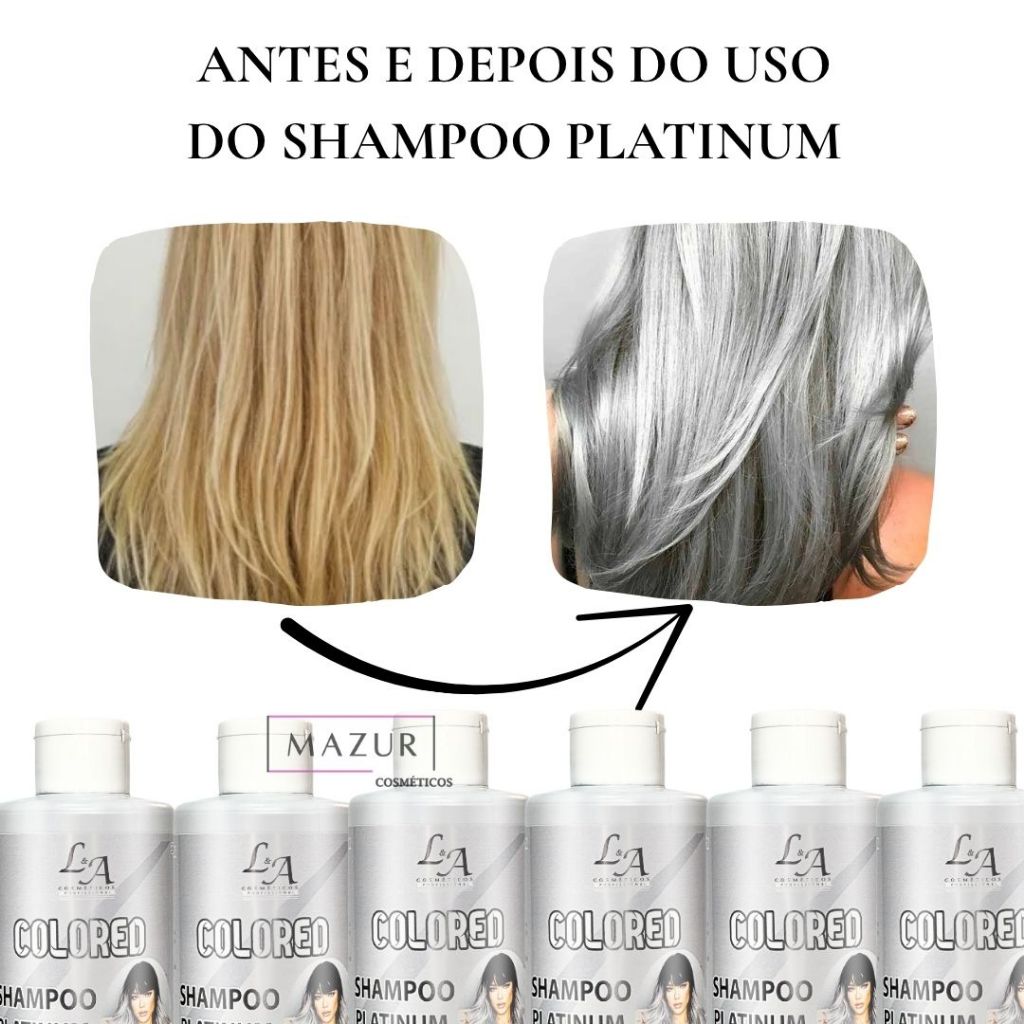 Shampoo Platinum 300ml – L&A Cosméticos Diga adeus ao amarelado indesejado e conquiste fios iluminados e cheios de vida! O Shampoo Platinum L&A Cosméticos foi especialmente desenvolvido para cabelos loiros, descoloridos, grisalhos ou platinados. Sua fórmula contém pigmentos matizadores que neutralizam os tons amarelados, realçando a cor fria e luminosa dos fios. Além de matizar, promove uma limpeza suave que não resseca, deixando os cabelos macios, hidratados e com brilho intenso. ✨ Benefícios: ✔ Neutraliza o amarelado e alaranjado dos fios ✔ Realça o brilho platinado e luminoso ✔ Limpeza suave sem ressecar ✔ Mantém os cabelos macios e hidratados ✔ Ideal para loiros, platinados e grisalhos 📌 Modo de uso: Com os cabelos úmidos, aplique o shampoo, massageando suavemente até formar espuma. Deixe agir de 2 a 5 minutos e enxágue bem. Use de 1 a 2 vezes por semana para manter a cor perfeita. 📦 Contém: 1 unidade – Shampoo Platinum 300ml