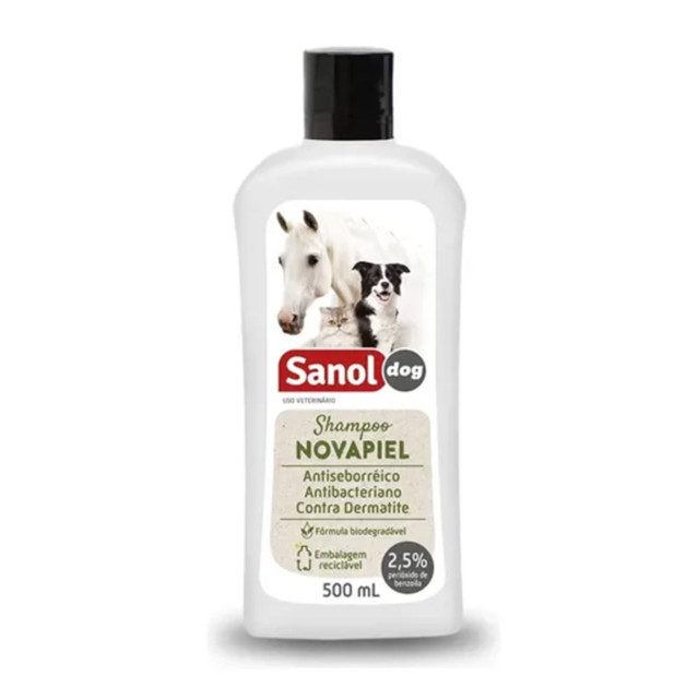 Cuide da pele sensível do seu pet com o Shampoo Novapiel Peles Sensíveis Sanol Dog 500ml. Com ação antibacteriana e antisseborreica, ele é indicado para o tratamento sintomático de diversas condições dermatológicas, como piodermites superficiais e profundas, dermatite piotraumática, foliculite, impetigo, furunculose e síndrome seborreica. Sua fórmula contém 2,5% de peróxido de benzoíla, que atua como agente queratolítico e sebostático, ajudando a controlar a oleosidade da pele, eliminar bactérias e promover a renovação celular. É ideal para cães, gatos e até cavalos, sempre com orientação veterinária. 🧴 Destaques do Produto • Ação antibacteriana e antisseborreica • Indicado para tratamento de infecções de pele e sarnas • Contém 2,5% de peróxido de benzoíla • Fórmula biodegradável e segura para pets • Embalagem prática de 500ml 🧼 Modo de Uso - Agite antes de usar - Molhe completamente o pelo do animal - Aplique o shampoo e massageie até formar espuma - Deixe agir por 10 minutos - Enxágue bem e repita se necessário - Frequência de uso conforme orientação veterinária 📋 Informações Técnicas Marca: Sanol Dog Produto: Shampoo terapêutico Linha: Novapiel Volume: 500ml Indicação: Cães, gatos e cavalos com pele sensível ou dermatites ⚠️ Cuidados • Uso tópico, evitar contato com olhos e mucosas • Não utilizar em filhotes sem orientação veterinária • Conservar em local fresco e ao abrigo da luz ✨🐾 Tratamento, alívio e cuidado em cada banho. Experimente o Shampoo Novapiel Sanol Dog 500ml e proporcione mais conforto e saúde para a pele do seu pet. Compre hoje!