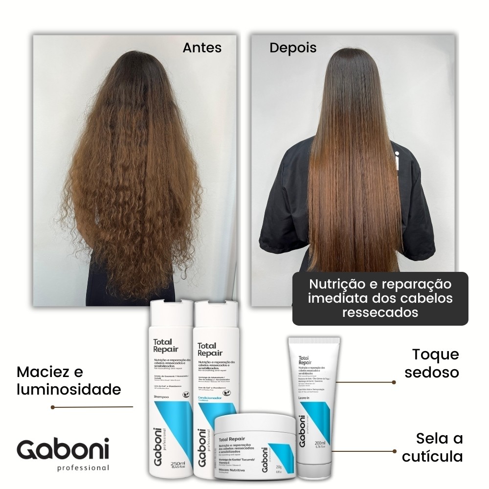| Shampoo Nutrição e Reparação Imediata Total Repair 250ml Gaboni este produto | R$ 64,90 | 22% | 5.0/5 | 5 |