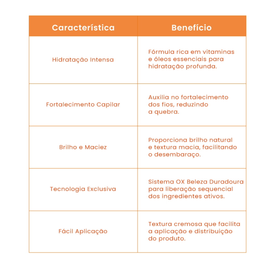 OX Cosméticos Mari Maria Hair Vita Glow Shampoo para cabelos ressecados e enfraquecidos. Nutre os fios, proporcionando cabelos fortes e com brilho, além de auxiliar no crescimento saudável dos fios. A linha OX Cosméticos Mari Maria Hair Vita Glow apresenta uma cocriação com a influencer Mari Maria. A fórmula é ideal para cabelos ressecados e enfraquecidos. Isso porque a combinação do blend de óleos ricos em vitaminas A, C, D, E, complexo B, ômega 3 e 6 com o Sistema OX Beleza Duradoura, é a fórmula certa para nutrir os fios, auxiliando no crescimento saudável dos cabelos. Conselho de Aplicação: Aplique o Shampoo OX Mari Maria Vita Glow nos cabelos molhados massageando-os por alguns minutos. Enxágue e repita a aplicação. Para melhores resultados, utilize toda a linha OX Mari Maria Vita Glow.