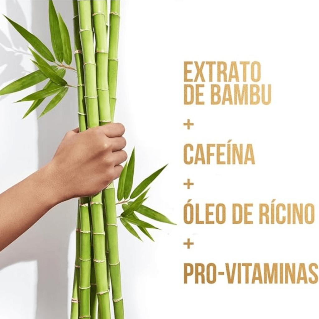 SHAMPOO PANTENE NUTRE E CRESCE BAMBU 510ML A coleção Pantene Bambu Nutre e Cresce foi criada para ajudar no ciclo da quebra de cabelo, nutrindo desde as raízes, para o cabelo crescer mais forte. Esse shampoo transparente limpa profundamente ao mesmo tempo que protege a estrutura do cabelo. Com extrato de bambu e óleo de rícino. Contém 0% de parabenos, corantes e óleos minerais. O poder de combate à quebra de Pantene Bambu está disponível em produtos de toda a linha, shampoo, condicionador, creme para pentear, máscara nutritiva. Agora, você pode combater a quebra porque um Cabelo Pantene diz: meu crescimento não tem limites! - Nutrição desde à raíz, para seu cabelo crescer forte e mais resistente - Ajuda a reduzir a queda de cabelo - O bambu é mais forte que madeira, concreto e aço e pode ser flexível com o vento, sem quebrar. - O óleo de rícino, que é rico em ômega 9, tem poder hidratante e pH balanceado - Uma nova fragrância que transmitirá uma sensação de natureza, com um aroma inspirado nas florestas de bambu - Queda causada pela quebra dos fios Como usar: Aplicar sobre o cabelo úmido, massagear suavemente o couro cabeludo com a ponta dos dedos com um movimento circular. Enxaguar e repetir se necessário.