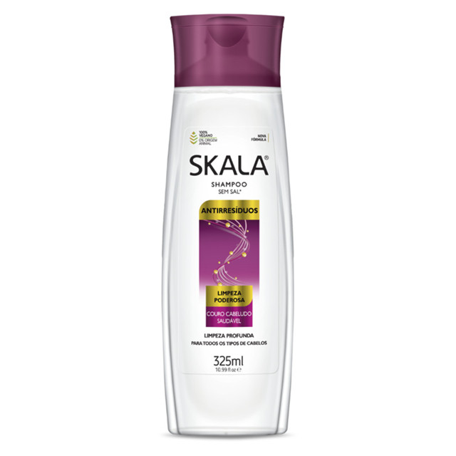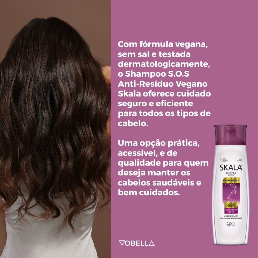 | Shampoo Para Cabelo S.O.S Anti-Resíduo Vegano Skala 325ml este produto | R$ 21,04 | 20% | 4.9/5 | 1 |