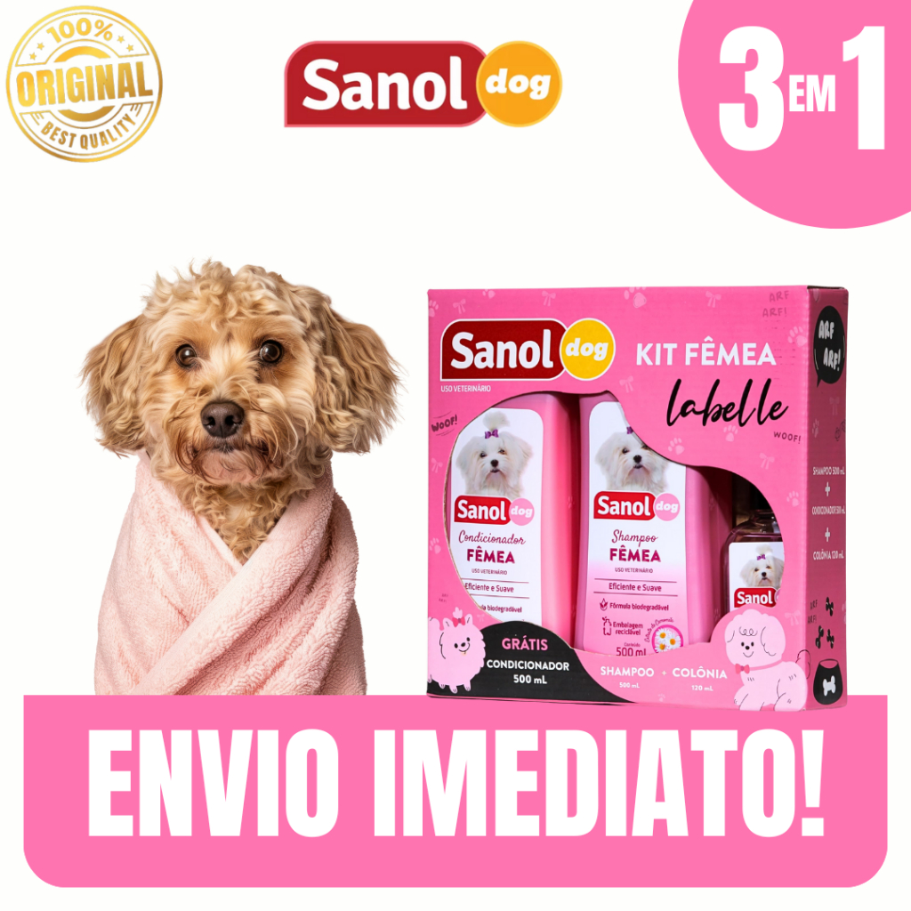 Shampoo para cachorros + condicionador e Colônia Kit banho hidratação brilho - Envio Imediato