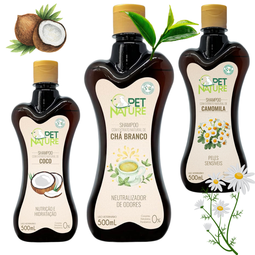 Shampoo Pet Nature COCO * CHA BRANCO * ou CAMOMILA 500ml Petbrilho - Escolha