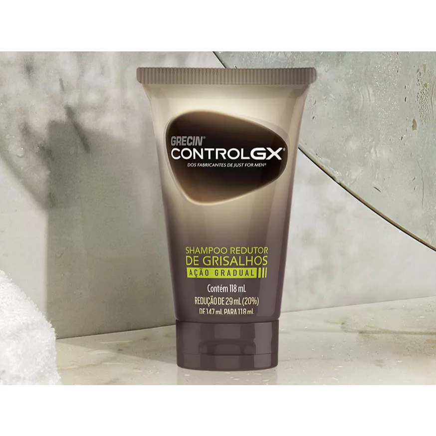Shampoo Redutor de Grisalhos Control Gx Ação Gradual 118ml Grecin - Kit C/2 Unidades O Control GX é o primeiro e único shampoo inteligente obastante para reduzir gradualmente e permanentemente os cabelos brancos ou grisalhos de forma lenta e gradual, enquanto ele limpa e condiciona seu cabelo. Você obtém um visual extremamente natural e sutil. Basta usá-lo no lugar do seu shampoo habitual até que você alcance o resultado esperado. Em seguida, use-o em rotação com o seu shampoo habitual para manter o aspecto que você gosta. Nunca houve uma maneira mais fácil de controlar o seu cabelo grisalho ou branco. Benefícios: - Resultado discreto e natural; - Reduz os grisalhos gradualmente; - Possui fórmula suave; - Limpa suavemente e revitaliza os cabelos; - Ideal para todas as tonalidades de cabelo. Modo de uso: Use como seu shampoo convencional Para obter os resultados, é recomendado que, ao usar o shampoo, você deixe a espuma por pelo menos três minutos em seu cabelo. Importante massagear para facilitar a penetração dos ingredientes no couro cabeludo.Uma vez que você atingiu o nível de redução de cinza que você gosta, você pode reduzir a frequência de uso, alternando com outro shampoo. No início, você pode usar como seu shampoo diário. Quando estiver no "modo de manutenção", use uma ou duas vezes por semana. Resultado: Os resultados vão depender de você e do grau de cabelos brancos que você tem. Quanto mais cabelos brancos, mais longo será o processo. O importante é que você está no controle e todo o processo é feito de forma gradual. Geralmente, é possível notar os primeiros resultados com quatro semanas de uso. Composição: Aqua, disodium lauryl sulfosuccinate, decyl glucoside, cetearyl alcohol, glycol stearate, ethanolamine, cocamidopropyl, acid, aloe barbadensis, juice, chamomilla recutita, limonene, linaloo.