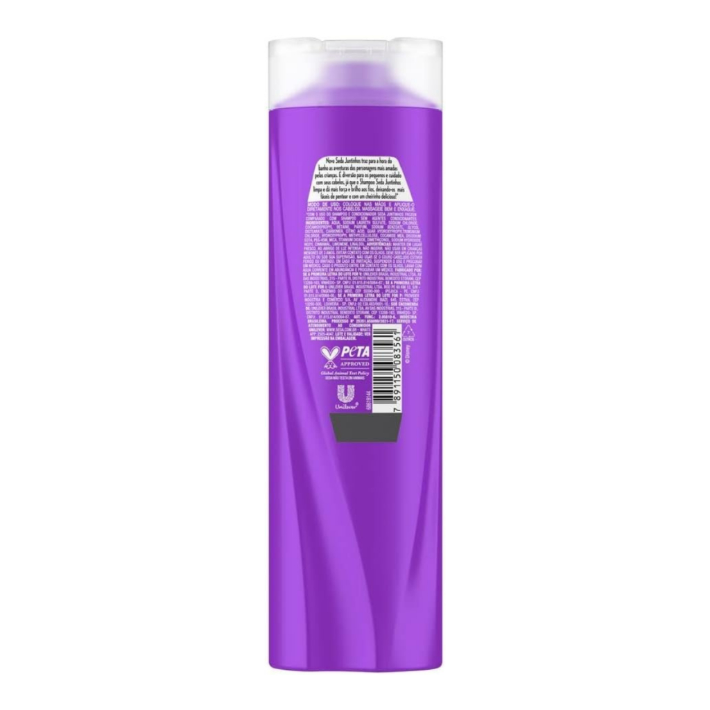Shampoo Seda Juntinhos Frozen Brilho Encantado 300ml Principais Características: - Fórmula Especial com Brilho Encantado: Enriquecida com ingredientes que promovem brilho intenso e hidratação, deixando o cabelo mais luminoso e saudável. - Livre de Parabenos: Desenvolvido com uma fórmula suave, perfeita para o cuidado delicado dos cabelos. - Dermatologicamente Testado: Seguro para o uso diário, garantindo uma limpeza eficaz sem danificar os fios. Benefícios: - Cabelos com brilho radiante e maciez prolongada. - Hidratação profunda para um toque suave e natural. - A fragrância encantadora proporciona uma sensação de frescor e limpeza duradoura. Diferenciais do Produto: - Criado para deixar os cabelos radiantes e com brilho intenso, inspirado na magia e leveza do universo Frozen. - A fórmula suave e eficaz promove limpeza sem ressecar, proporcionando um brilho saudável. - Ideal para toda a família, sendo especialmente cuidadoso com os fios delicados. Especificações Técnicas: - Peso: 300ml Instruções de Uso: - Aplique o shampoo nos cabelos molhados, massageando o couro cabeludo até formar espuma. - Enxágue bem e, se necessário, repita o processo. - Para melhores resultados, utilize o condicionador da linha Seda Juntinhos Frozen Brilho Encantado. Avisos e Precauções: - Uso externo. Evite o contato com os olhos. - Em caso de irritação, suspenda o uso e consulte um médico. - Mantenha fora do alcance de crianças. O que está incluso? - 1 unidade de Shampoo Seda Juntinhos Frozen Brilho Encantado 300ml ---- DÚVIDAS FREQUENTES ---- Os produtos são originais? Sim. Todos os nossos produtos são originais. Emitem nota fiscal? Sim. Emitimos nota fiscal para todos os pedidos.