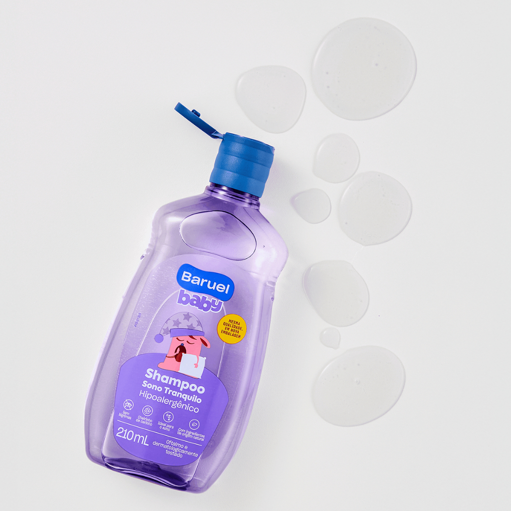 Shampoo Sono Tranquilo Baruel Baby 210ml – Cuidado suave que ajuda a acalmar antes do soninho O Shampoo Sono Tranquilo Baruel Baby foi desenvolvido com uma fórmula suave e ingredientes calmantes que promovem um momento relaxante na hora do banho, preparando o bebê para um sono mais tranquilo e confortável. Principais Características: • Fórmula com fragrância relaxante, ideal para uso noturno • Limpa delicadamente os fios e o couro cabeludo sem agredir a pele sensível do bebê • Não arde os olhos, garantindo um banho seguro e agradável Benefícios: • Ajuda a acalmar o bebê antes de dormir • Deixa os cabelos macios, perfumados e fáceis de pentear • Contribui para uma rotina de higiene tranquila e acolhedora Diferenciais do Produto: • Dermatologicamente e oftalmologicamente testado • Livre de corantes e parabenos • Desenvolvido especialmente para a pele delicada do bebê Especificações Técnicas: • Peso: 210g Instruções de Uso: • Aplique nos cabelos molhados do bebê, massageando suavemente até formar espuma • Enxágue bem com água corrente Avisos e Precauções: • Uso externo • Deve ser aplicado por um adulto ou sob sua supervisão • Evite contato com os olhos. Em caso de contato, enxágue abundantemente • Mantenha fora do alcance de crianças O que está incluso? • 1 unidade de Shampoo Sono Tranquilo Baruel Baby 210ml ---- DÚVIDAS FREQUENTES ---- Os produtos são originais? Sim. Todos os nossos produtos são originais. Emitem nota fiscal? Sim. Emitimos nota fiscal para todos os pedidos.