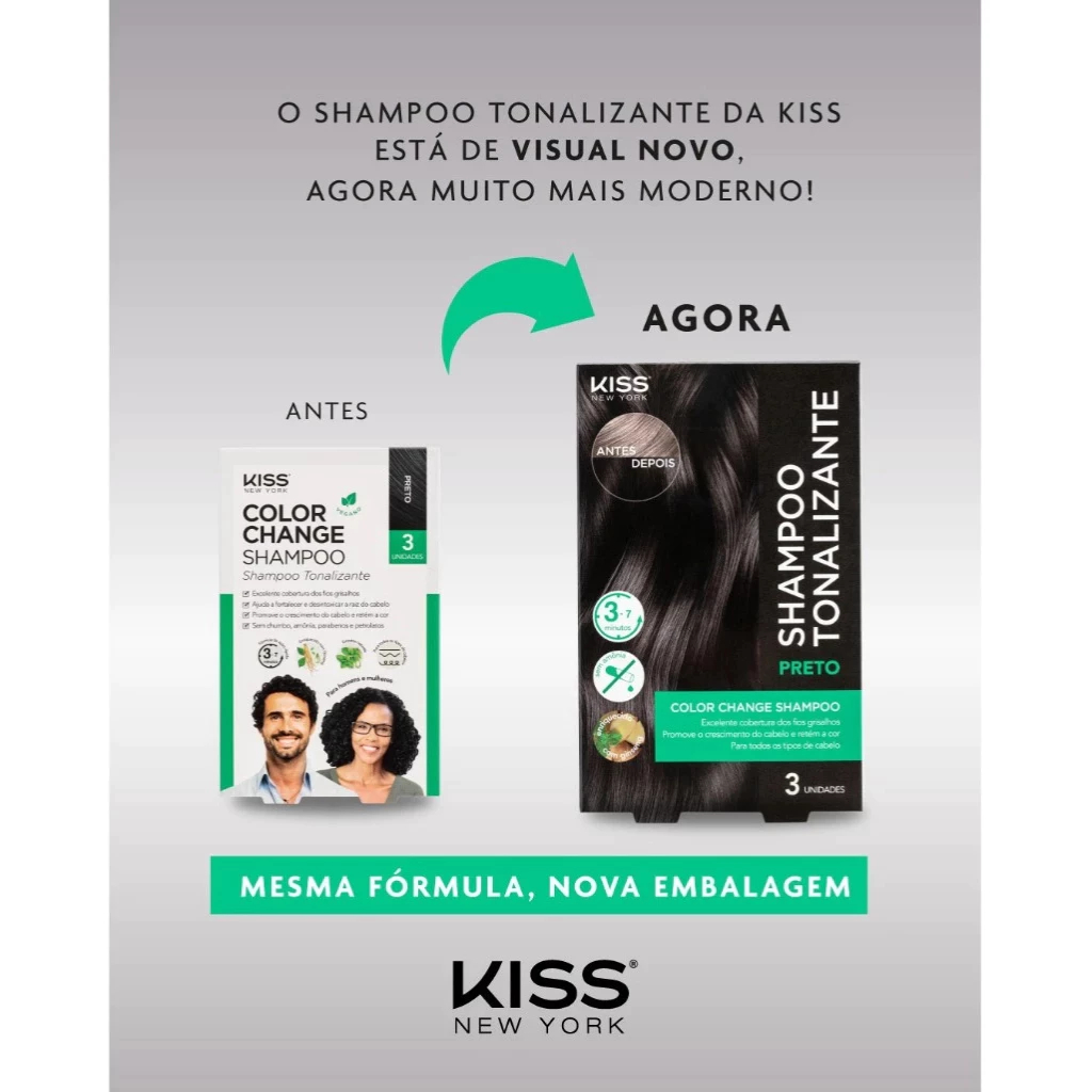 Shampoo Tonalizante Color Change KISS NEW YORK com 3 sachês Sem Amônia