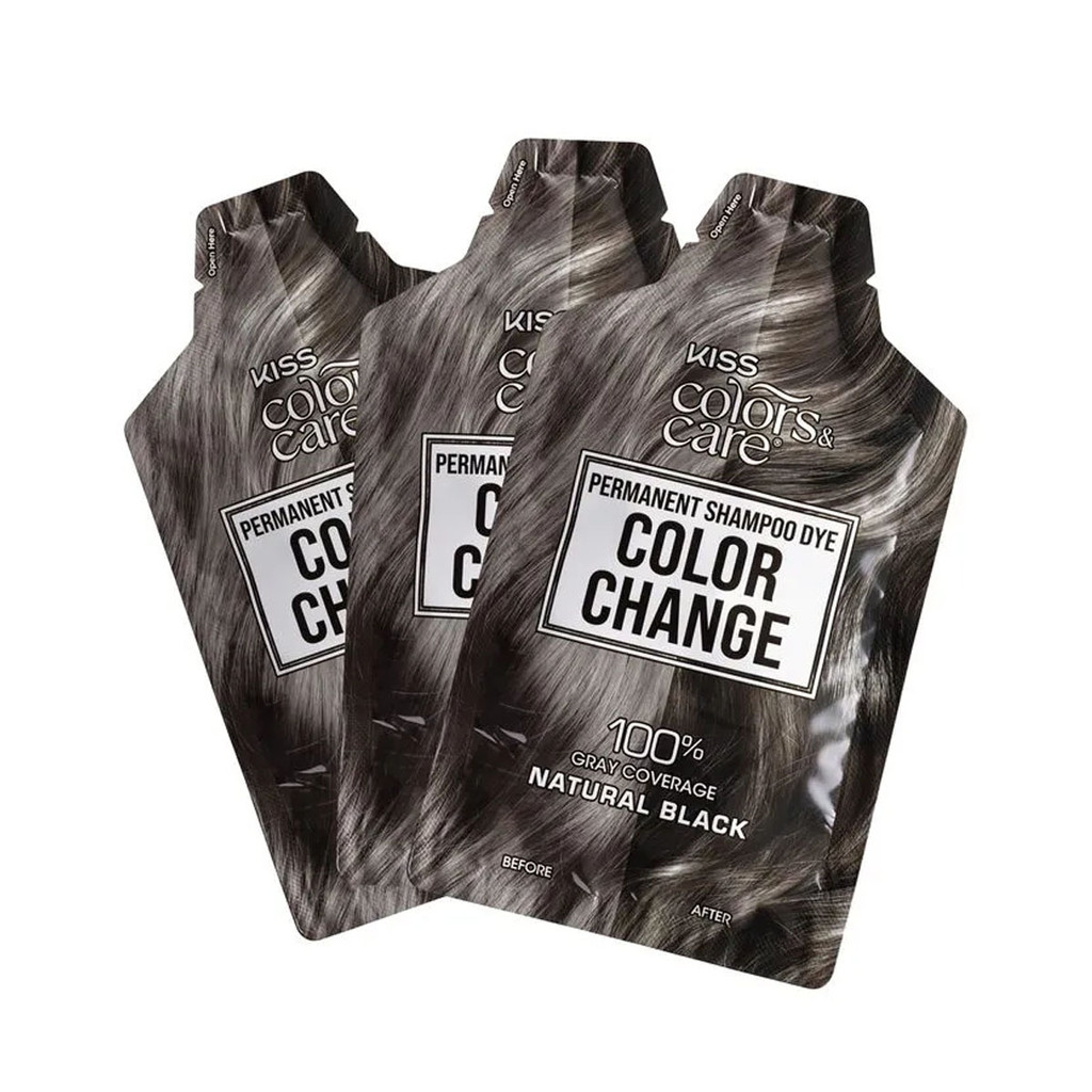 Descrição: O Shampoo Tonalizante Kiss New York Color Change da tchau aos grisalhos em apenas 3 minutos usando Color Change Shampoo! Com fórmula de ação rápida, o shampoo tonalizante da Kiss NY garante 100% da cobertura dos grisalhos em um período de apenas 3 a 7 minutos. Além de uma fórmula vegana, não testada em animais e livre de amônia e parabenos, o produto ainda é rico em Ginseng, ativo que fortalece a raiz do cabelo e elimina as toxinas e também conta com Extratos Naturais que promovem o crescimento dos fios e ajudam a reter a cor do cabelo por mais tempo. É indicado para todos os tipos de cabelos, inclusive os quimicamente tratados e sua fórmula garante mínima transferência para toalhas e roupas. MODO DE USAR 1 - Antes de tudo, faça o teste de alergia: misture a base com o ativador e aplique no antebraço ou atrás da orelha. Aguarde 48h. Sem reação? Tá liberado! Sentiu ardor, coceira ou irritação? Enxágue bem e não utilize o produto. 2 - Lave bem os cabelos com shampoo de sua preferência para eliminar resíduos, oleosidade ou sujeira. Isso garante que o Color Change atue com mais eficácia. Depois, retire o excesso de água. Coloque as luvas que acompanham o produto para proteger suas mãos e evitar manchas. 3 - Abra o sachê, misture a base com o ativador até ficar homogêneo e aplique nos fios da raiz às pontas, massageando bem. Deixe agir de 3 a 7 minutos e enxágue totalmente. Pronto, fios renovados e grisalhos cobertos com resultado incrível! USO EXTERNO. MANTENHA FORA DO ALCANCE DAS CRIANÇAS. Conteúdo da embalagem: Contém 3 sachês de 30mL (cada sachê possui 15mL de base de cor e 15 mL de ativador de cor) e 3 pares de luvas descartáveis.