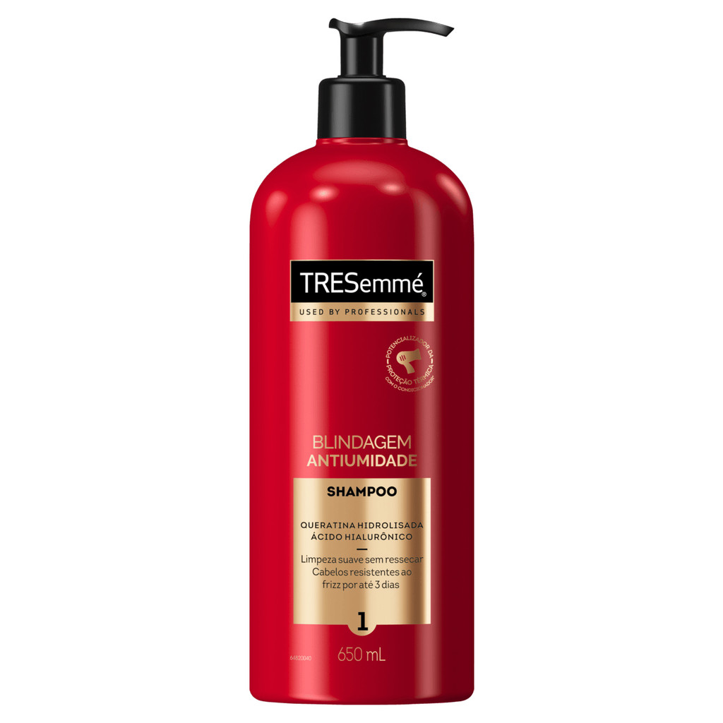 O Shampoo Tresemmé Blindagem Antiumidade foi desenvolvido para quem busca cabelos livres do frizz e protegidos contra a umidade por até 3 dias. Sua fórmula profissional é enriquecida com Queratina Hidrolisada e Ácido Hialurônico, garantindo hidratação intensa, fortalecimento dos fios e limpeza suave sem ressecar. Principais Ativos - Queratina Hidrolisada: Fortalece, hidrata e repara os cabelos, além de melhorar a elasticidade e prevenir a quebra - Ácido Hialurônico: Promove hidratação, maciez, brilho e controle do frizz. Benefícios - Proteção prolongada: Mantém os fios alinhados e resistentes ao frizz por até 3 dias. - Hidratação profunda: O Ácido Hialurônico retém a umidade essencial nos fios, evitando o ressecamento. - Reparação e fortalecimento: A Queratina Hidrolisada ajuda na reconstrução capilar e aumenta a resistência dos cabelos. - Limpeza suave: Remove impurezas sem agredir ou ressecar os fios. - Proteção térmica: Potencializa a proteção contra danos causados por ferramentas de calor, quando usado com o Condicionador Tresemmé Blindagem Antiumidade. Modo de Uso Aplique o shampoo nos cabelos molhados. Massageie suavemente até formar espuma. Enxágue bem. Para melhores resultados, utilize o Condicionador Tresemmé Blindagem Antiumidade, garantindo cabelos mais hidratados, protegidos e resistentes ao frizz.