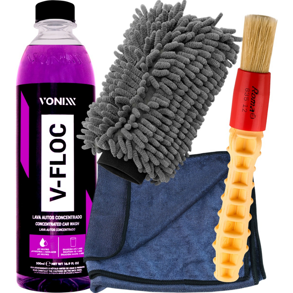 Shampoo V-Floc Toalha Secagem Luva Microfibra Pincel Vonixx