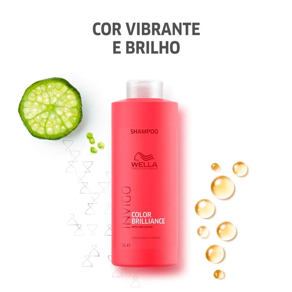 O Shampoo Wella Professionals Invigo Color Brilliance foi desenvolvido especialmente para cuidar dos cabelos coloridos. Sua fórmula hidratante, limpa suavemente e realça a cor dos fios, pois possui ativos antioxidantes que lutam contra o desbotamento da cor, para garantir que a coloração permaneça por muito mais tempo. Wella Professionals Invigo Color Brilliance proporciona proteção da cor por até 7 semanas, deixando seus saudáveis, protegidos do desbotamento e com a cor linda. Com perfume amadeirado cítrico floral, traz um delicioso aroma sofisticado, além de não pesar os fios. Resultado: Cabelos tratados com Ph otimizado. Garante 7 semanas de proteção e aumento do brilho da cor do cabelo quando o uso é regular. Ativos: - Caviar de Lima: possui alta concentração de vitaminas e antioxidantes, que ajudam a prolongar a vivacidade da cor e proteger. - Histidina e Vitamina E: ajuda a controlar o processo de oxidação dos fios após a coloração a fim de proteger a cor. - Moléculas Encapsuladas de Cobre: mantêm o tom vibrante. Modo de usar: Aplique no cabelo molhado e massageie-o até fazer espuma. Enxague bem. Sobre a marca: A Wella é uma das maiores empresas de cosméticos do mundo. Uma empresa especializada em produtos para cabelos, incluindo shampoos, condicionadores, alisantes, colorações e principalmente tratamentos para todos os tipos de cabelo. A Wella já está no mercado há mais de 130 anos e sempre acompanhando as tendências e investindo em tecnologia para oferecer o melhor para você.