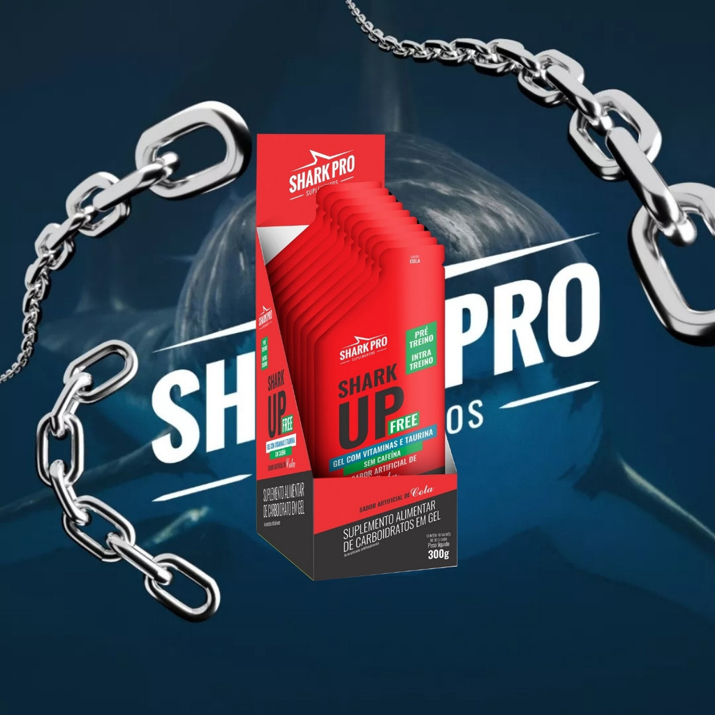 Sobre o produto: O Shark UP Free da Shark Pro Suplementos é um suplemento alimentar em gel desenvolvido especialmente para quem busca energia e suporte nutricional antes ou durante os treinos. Sua fórmula combina carboidratos de rápida absorção com vitaminas e taurina, proporcionando reposição energética eficaz e suporte à performance. É indicado tanto para pré-treino quanto para o intra-treino. A versão “Free” é livre de cafeína, sendo uma excelente opção para quem é sensível a estimulantes ou treina à noite. Como consumir - Consumir 1 sachê (30g) cerca de 30 minutos antes do treino ou a cada 30 a 45 minutos durante atividades físicas prolongadas. - Pode ser consumido diretamente do sachê, sem necessidade de diluição. Benefícios - Fornece energia rápida durante os treinos - Ideal para pré e intra-treino - Com taurina e vitaminas - Livre de cafeína - Prático e fácil de consumir - Sabor agradável Alergênicos - Não contém informações visíveis na imagem sobre alergênicos. - Consulte o rótulo completo do produto para detalhes específicos. Ingredientes - Carboidratos - Vitaminas - Taurina - Aromatizante artificial de cola - Recomenda-se a leitura do rótulo físico para a lista completa de ingredientes. Advertências - Este produto não substitui uma alimentação equilibrada e seu consumo deve ser orientado por profissional de saúde ou nutricionista. - Mantenha fora do alcance de crianças. - Armazenar em local seco, fresco e ao abrigo da luz solar. - Após aberto, consumir imediatamente. Conclusão: Shark UP Free é uma alternativa prática e eficaz para quem precisa de reposição energética durante os treinos, especialmente em modalidades de longa duração. Com uma fórmula equilibrada e livre de cafeína, é ideal para atletas que preferem evitar estimulantes, sem abrir mão do rendimento físico e da recuperação.