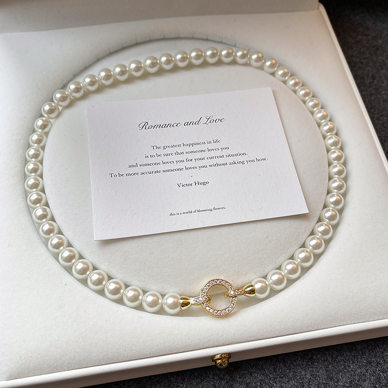 Shi família colar redondo pérola, moda francesa clavícula cadeia