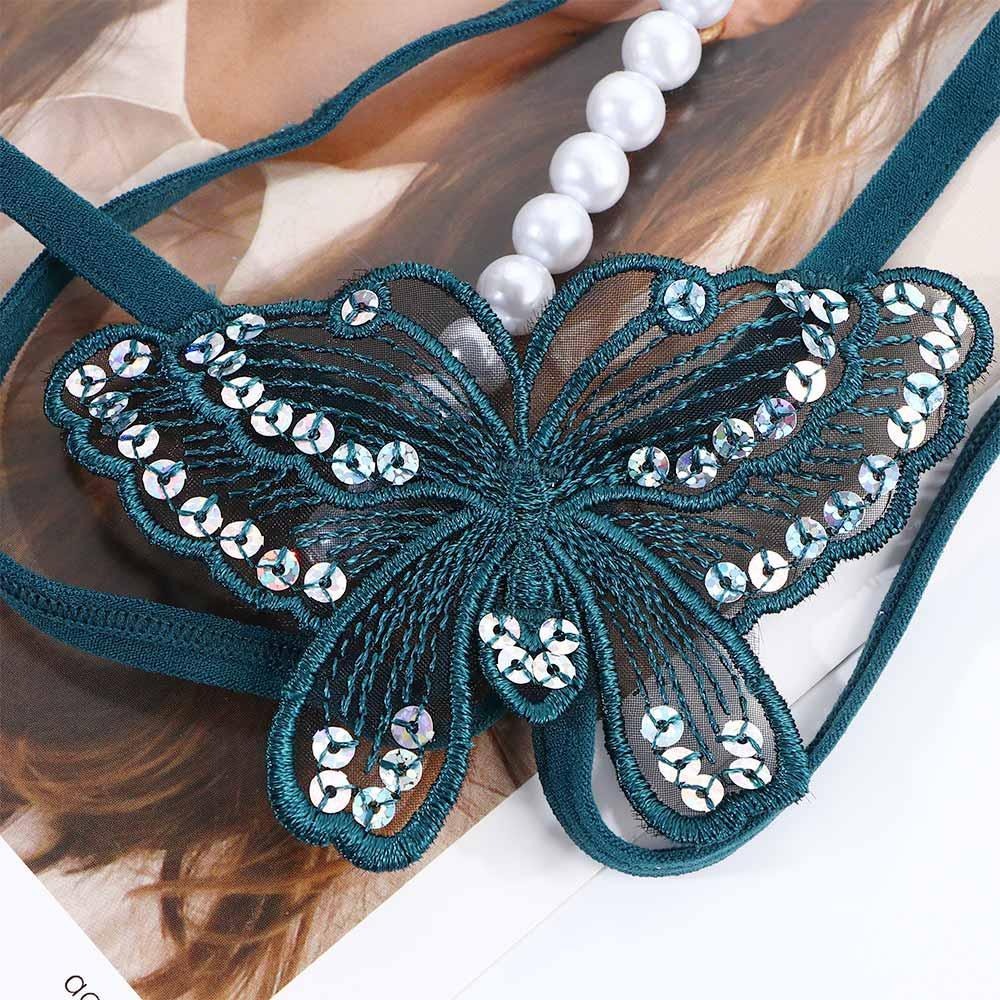 SHIGONG Roupa Íntima Feminina Bordada Borboleta Pérola Tanga