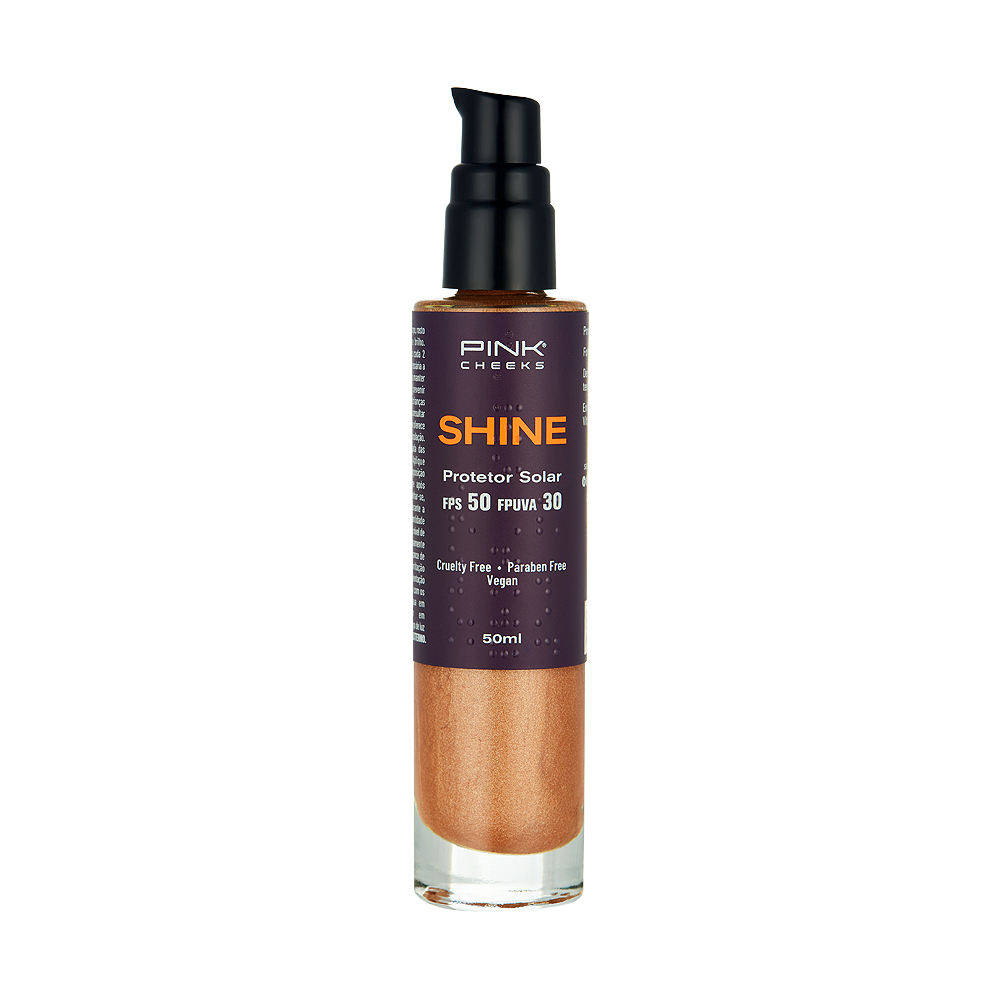 "Shine é um protetor solar corporal iluminador, multifuncional, de altíssima proteção FPS50 e FPUVA30 que alia iluminação e tratamento, resistente à água e ao suor. Formato Dry Oil que garante toque seco e rápida absorção, sem deixar aspecto oleoso, hidratando a pele desde a primeira aplicação, conferindo viço e maciez. Ideal para uso durante a prática esportiva, seja ela indoor ou outdoor. Sua fórmula é enriquecida com vitamina E e Óleos vegetais, que hidratam, nutrem e regeneram a pele naturalmente, enquanto protege. Ideal para o corpo mas pode ser usado também nos cabelos, como iluminador. O Shine Protetor Solar garante muito mais proteção e hidratação no dia a dia ou na sua rotina esportiva. Disponível em duas tonalidades: Bronze - partículas finas de brilho de tonalidade bronze, brilho mais intenso. e Lilás - partículas finas de brilho de tonalidade holográficas, brilho mais discreto. Brilho intenso que ilumina o movimento. Não é um bronzeador. Vencedor do Prêmio ABIHPEC 2018 na categoria Filtro solar e do prêmio Beauty Industry Awards em 2019. Dados Técnicos Altíssima proteção FPS50 FPUVA30 Ideal para proteger e iluminar sua pele Proporciona efeito glow e se adapta ao seu tom de pele Rico em vitamina E e Óleos vegetais, com potente ação hidratante e regenerativa Vegano e Livre de Parabenos Não testado em animais Dermatologicamente testado Modo de usar Agite delicadamente antes de usar. Aplique o Shine Protetor Solar Iluminador diretamente no corpo e espalhe com as mãos, garantindo proteção, hidratação e nutrição com efeito cintilante. É necessária a reaplicação do produto após transpiração excessiva ou permanência prolongada na água, para manter a sua efetividade. Se a quantidade aplicada não for adequada, o nível de proteção será significativamente reduzido. Ajuda a prevenir as queimaduras solares. Guarde longe da luz e calor excessivo. Composição Português DECAMETILCICLOPENTASILOXANO; C12-15 ALQUIL BENZOATO; OCTINOXATO; AVOBENZONA; MICA; BIS-ETILHEXILOXIFENOL METOXIFENIL TRIAZINE; DIETILAMINA HIDROXIBENZOIL HEXIL BENZOATO; ETILHEXIL TRIAZONE; SILICONA; LAUROIL LISINA; CICLOMETICONA / CROSPOLÍMERO DE DIMETICONA / DECAMETILCICLOPENTASILOXANO / TRIMETILSILOXISILICATO; ACETATO DE DEXTROALFATOCOFEROL; ÓLEO DE AMÊNDOA; ÓLEO DE GIRASSOL; ÓLEO DE OLIVA; ÓLEO DE ROSA MOSQUETA; PERFUME; PENTAERITRITIL TETRA-DI-T-BUTIL HIDROXIHIDROCINAMATO; LIMONENO; HIDROXIISOHEXIL 3-CICLOHEXENO CARBOXALDEÍDO; LINALOL; BENZIL SALICILATO; CITRONELOL; HIDROXICITRONELAL; ALFA ISOMETIL IONONE; CITRAL; BUTILFENIL METILPROPIONAL. Este produto não possui componentes de origem animal. A PINK CHEEKS não realiza testes de seus produtos em animais. Nossos testes são realizados em pessoas voluntárias, através de laboratórios credenciados. A ANVISA considera hipoalergênico os produtos que passaram por testes de sensibilização realizados em humanos em laboratórios especializados. Hipoalergênicos são produtos com menos chance de causar alergia. No entanto, não há garantias de que o produto não causará alergia em 100% das pessoas, já que cada pessoa tem uma reação diferente. A PINK CHEEKS não classifica este produto como hipoalergênico, uma vez que o produto não passou por testes. Você pode ter acesso à composição de todos os produtos da PINK CHEEKS através da página de cada produto em nosso site."