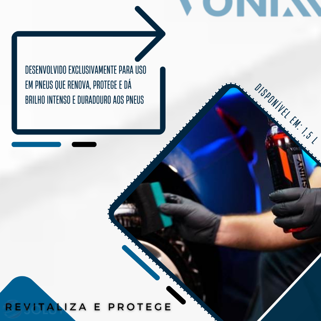 SHINY 240ML - REVITALIZADOR DE PNEUS VONIXX ................................................................................................................................... INFORMAÇÕES SOBRE O PRODUTO ...................................................................................................................................Shiny é um produto desenvolvido exclusivamente para uso em pneus que renova, protege e dá brilho intenso e duradouro aos pneus. O produto não sai ao entrar em contato com a água, podendo alcançar durabilidade de até 60 dias, rende de 15 a 20 aplicações em carros pequenos e mantendo o aspecto no pneu de brilho molhado. ................................................................................................................................... ESPECIFICAÇÕES DO PRODUTO ...................................................................................................................................- Brilho intenso e duradouro - Total proteção DURABILIDADE: Até 60 dias de durabilidade MODO DE USO: 1. Limpar bem a superfície e em seguida aplicar o produto com um aplicador de espuma até a completa revitalização. 2. Se necessário repetir a operação ................................................................................................................................... DÚVIDAS FREQUENTES ................................................................................................................................... Pergunta: Como é embalado o produto? Resposta: Todos os nossos produtos vendidos são embalados em caixas lacradas ou plástico stretch. Em respeito ao meio ambiente 90% das caixas são reutilizadas. Pergunta: Quem faz a entrega? Resposta: A entrega é terceirizada, feita via CORREIOS ou TRANSPORTADORA. Pergunta: O envio é feito em quantos dias? Resposta: Nós enviamos o seu pedido no prazo máximo de 24 horas após a confirmação de sua compra, sendo um dos envios mais rápidos da plataforma. Pergunta: Os produtos são novos ou usados? Resposta: Todos os produtos que trabalhamos são novos e com qualidade garantida. ...................................................................................................................................