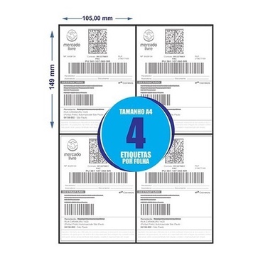 Shopee 250 Folhas A4 Etiqueta Adesiva Ecommerce Envio Correio Sigep 105x149 4 etiquetas por folha