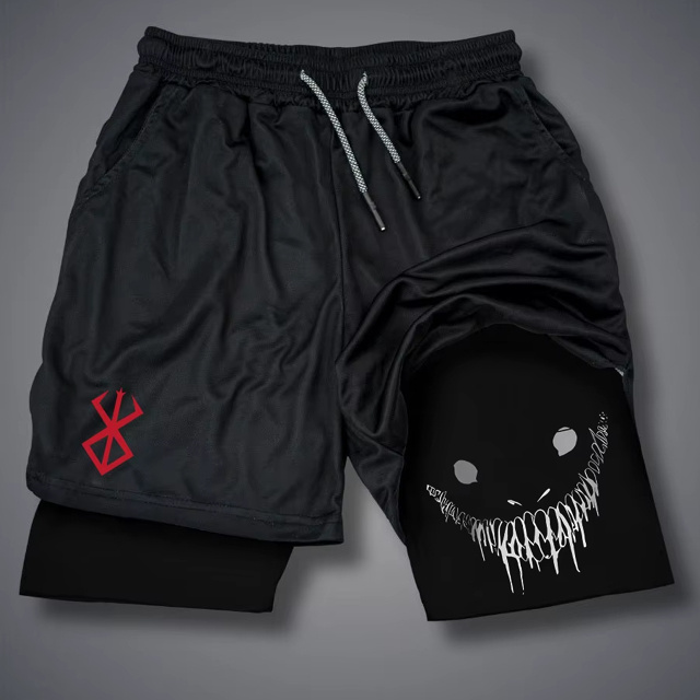 Short 2 em 1 Compressao Academia Berserk Guts Sacrifice Symbol Armor Anime Gym Bodybuilder