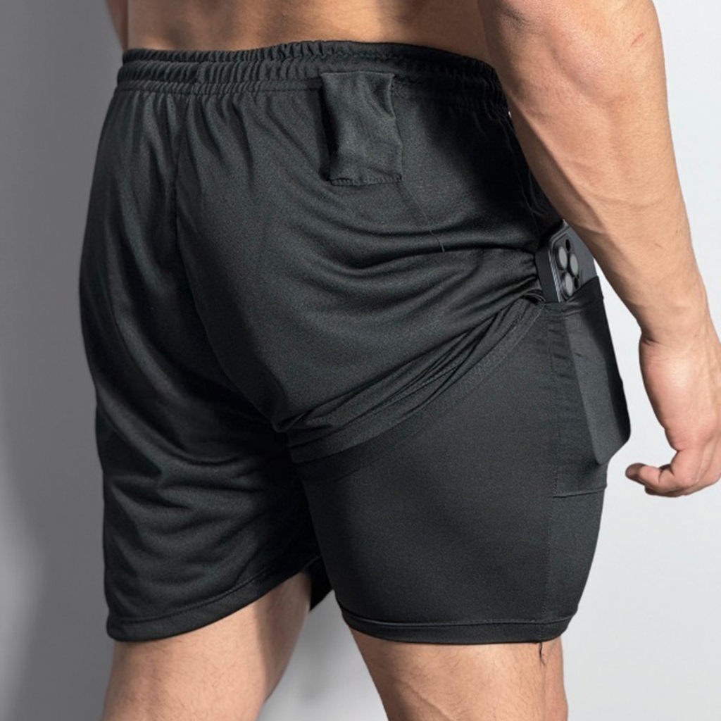 Características Principais: BERMUDA EXTERNA : TECIDO DRY FIT COM 2 BOLSOS GRANDES NAS LATERAIS, PASSAGEM TRASEIRA PARA TOALHA E BOLSO TRASEIRO PARA CARTÃO OU CHAVES. BERMUDA INTERNA: TECIDO DE COMPRESSÃO TÉRMICA SEGUNDA PELE COM 1 BOLSO PARA CELULAR IDEAL PARA ATIVIDADES FISICAS EM GERAL. PARTE EXTERNA - 100% Poliéster PARTE INTERNA - 92% Poliéster 8% Elastano , tecido com alta elasticidade e compressão desenvolvido com microfibras especiais. Benefícios Adicionais Compressão Ideal: Proporciona suporte muscular superior, ajudando a melhorar a circulação sanguínea e reduzir a fadiga durante treinos intensos. Secagem Rápida: Tecnologia de absorção de umidade que mantém o corpo seco e confortável, mesmo durante as sessões de treino mais pesadas. Ajuste Perfeito: Design ergonômico que se adapta ao corpo, oferecendo liberdade total de movimento sem comprometer o suporte. Costura Reforçada: Aumenta a durabilidade e resiste ao desgaste diário. Tamanhos Disponíveis: P, M, G, GG Cuidados com o Produto: Lavar à máquina a frio, com cores similares. Não usar alvejante. Secar em baixa temperatura. Não passar a ferro.