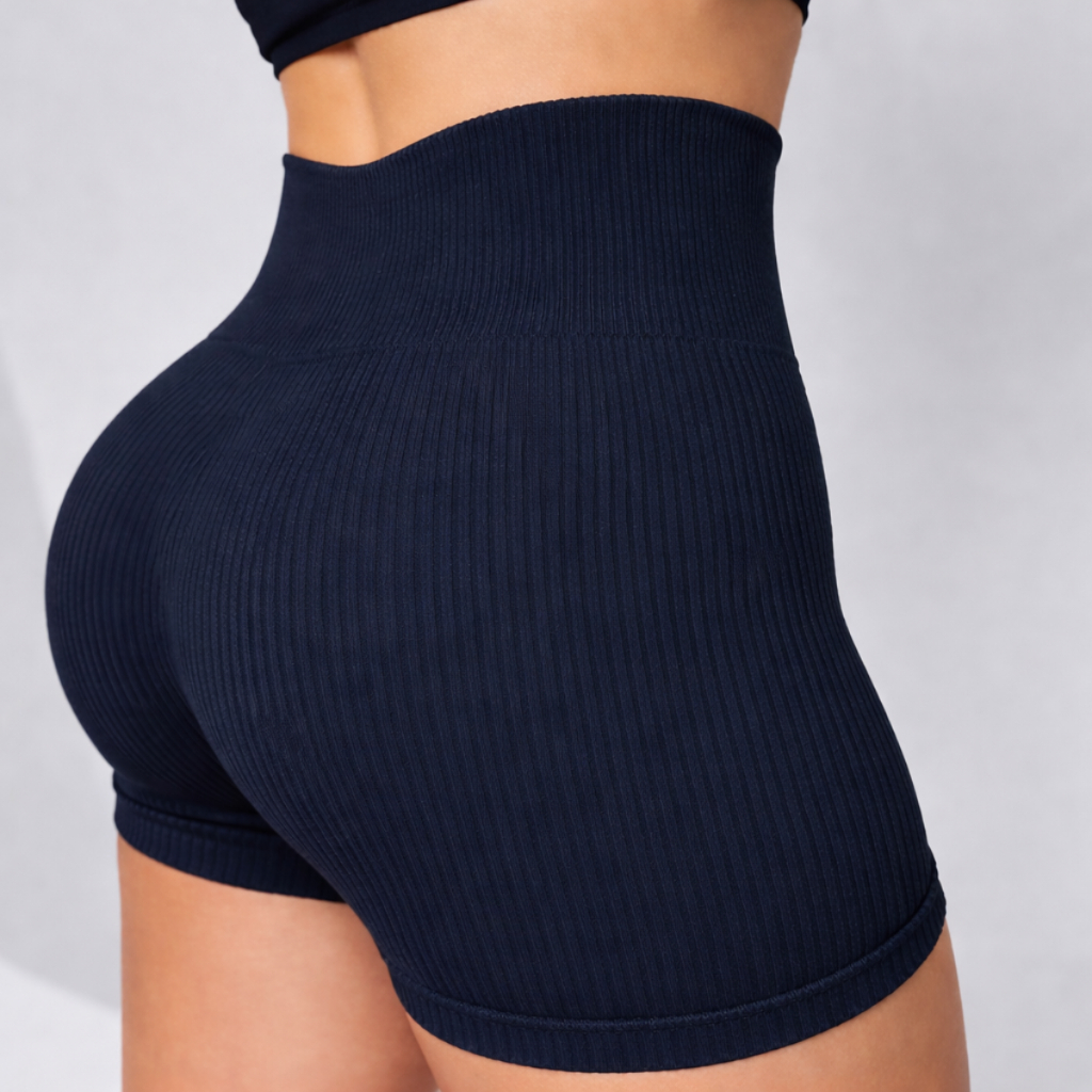 Short Academia Feminino Fitness Cintura Alta Canelado Sem Transparência Para Malhar Caminhada