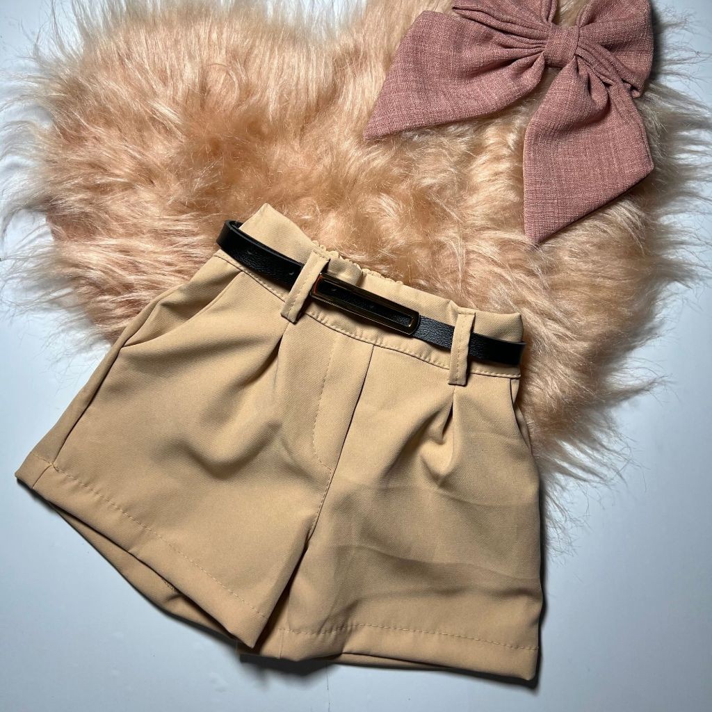Short Alfaiataria infantil Menina Acompanha cinto Feminino Fashion Bloguerinha Passeio Festa Dia a Dia
