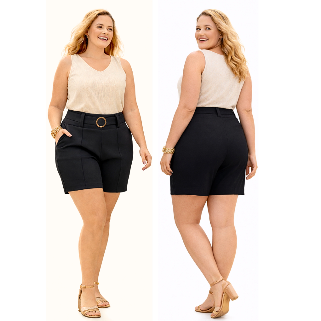 Short Alfaiataria Plus Size Feminino com Lycra Social Premium com Cinto e Fivela - SP 02