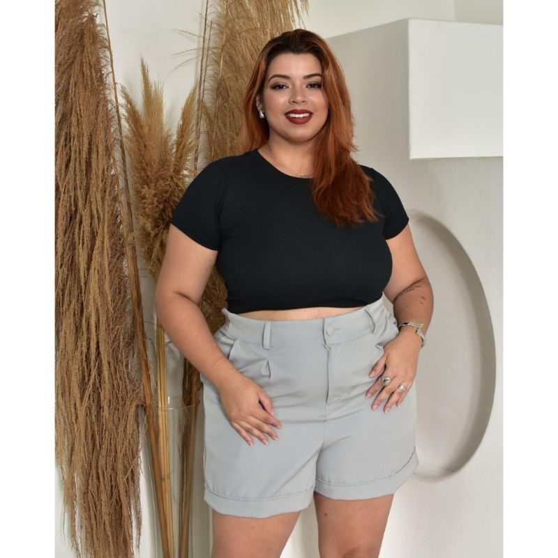 Short Alfaiataria Plus Size Feminino Elegante - Social com Barra do G1 ao G3