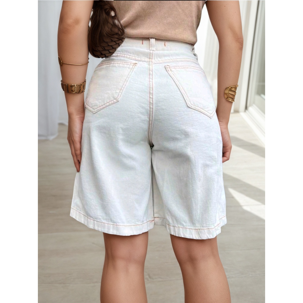 Short Bermuda Jeans Feminina Cor Lisa Sem Rasgo Com Bolsa Moda Evangélica Cor Branca