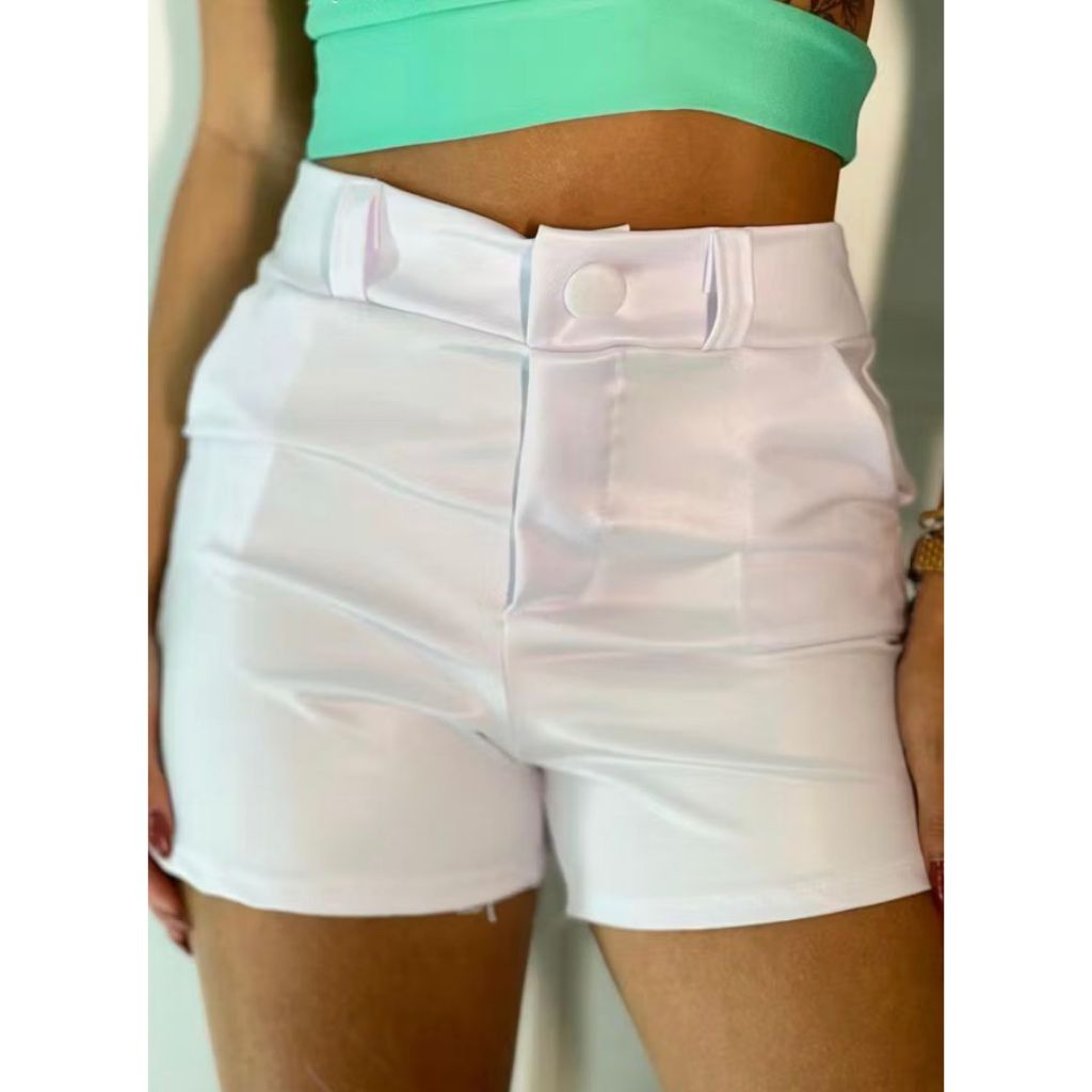 Short Botão Couro Fake com Bolso Estiloso Tendencia Feminina